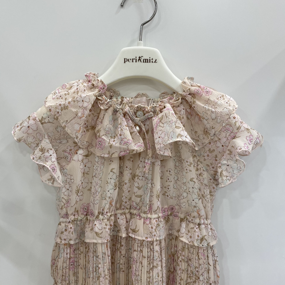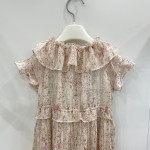 네크라인과 소매 부분 프릴 포인트가 들어가있는 사랑스러운 핑크 컬러의 원피스입니다