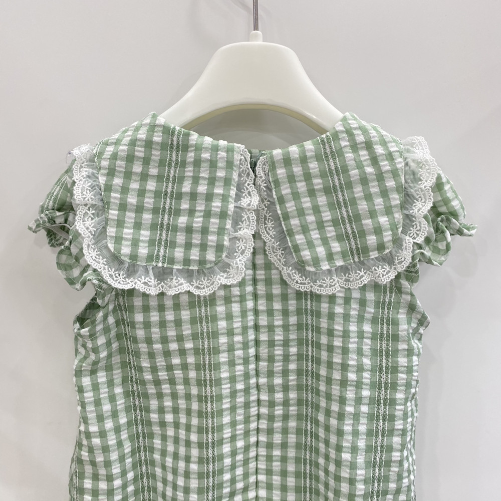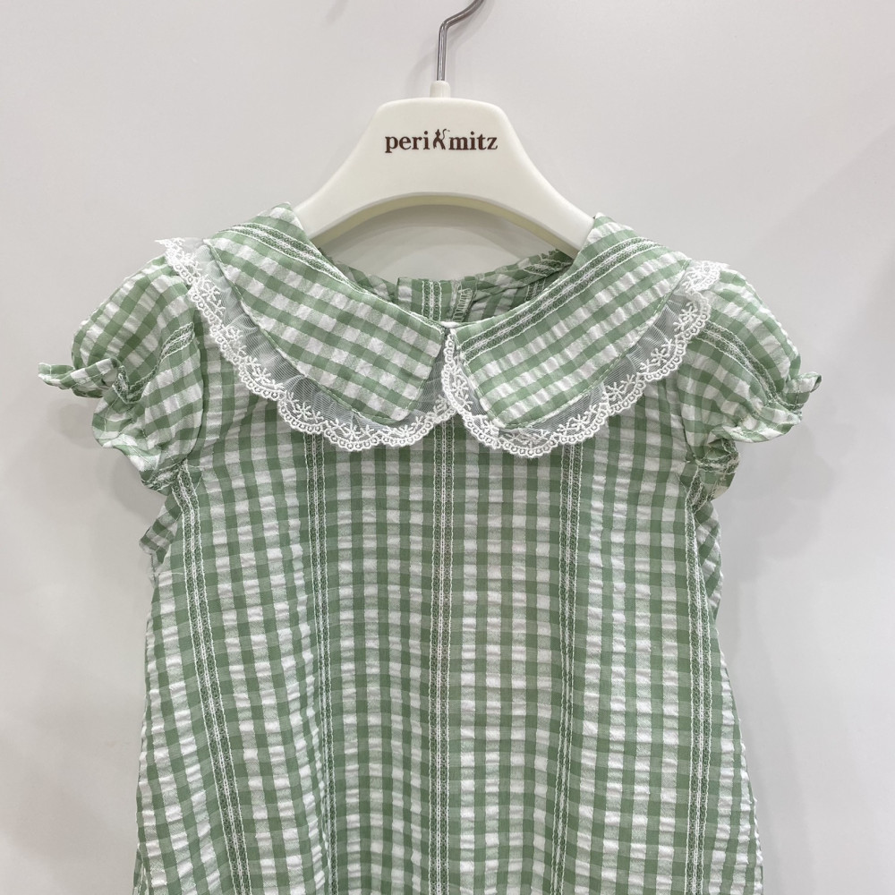카라 부분 레이스 배색이 들어가 러블리한 느낌을 더해준 여름용 체크 원피스입니다.