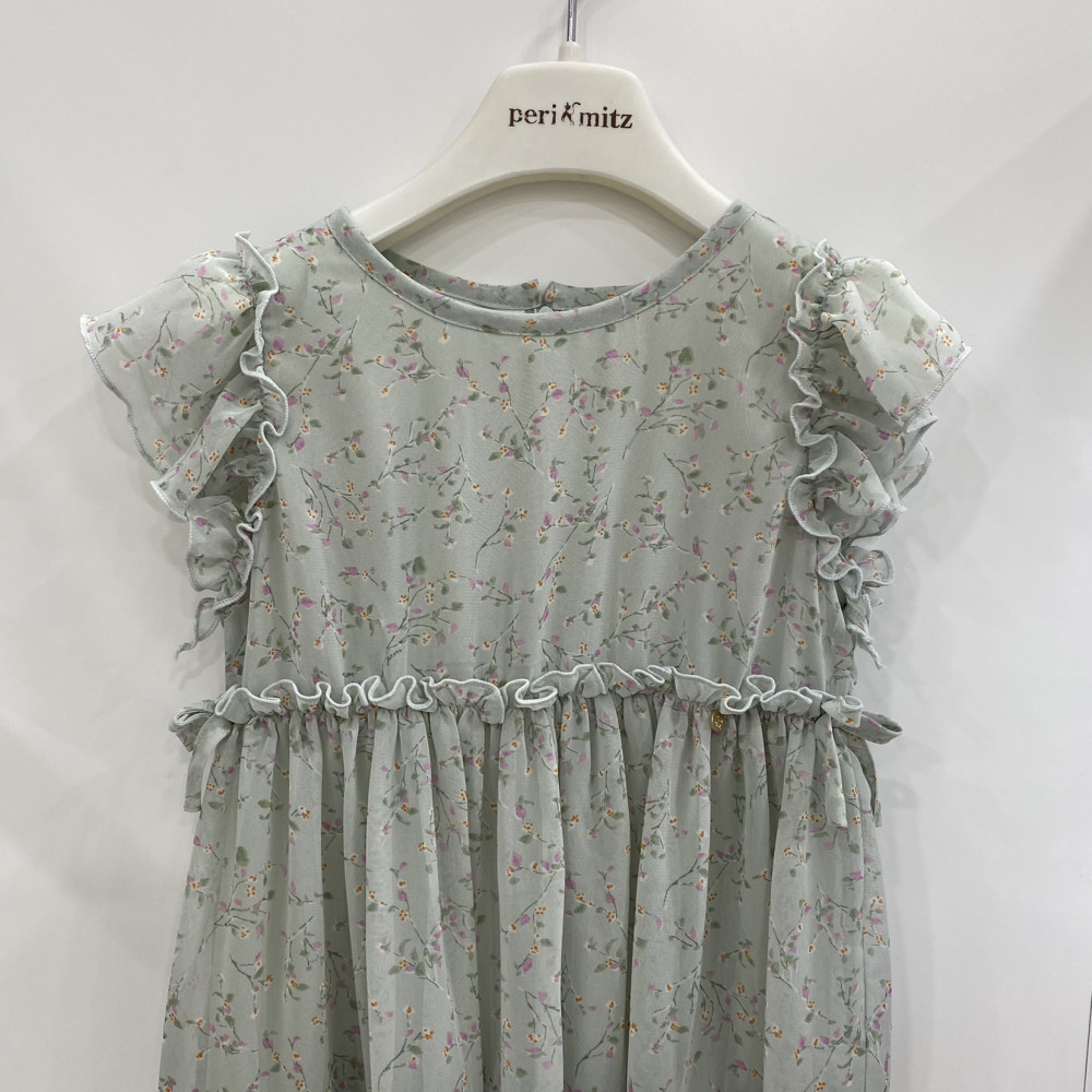 잔꽃 패턴의 러블리한 프릴 포인트 민소매 여름 원피스입니다.