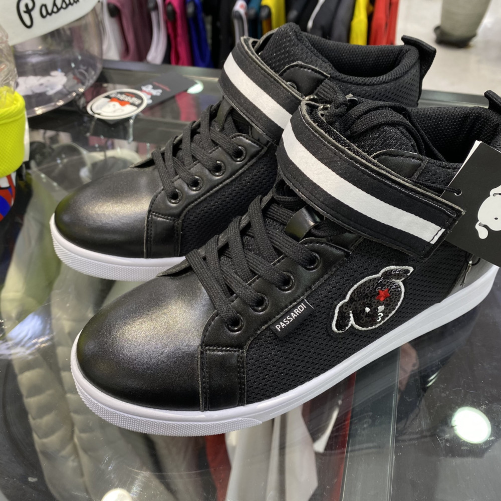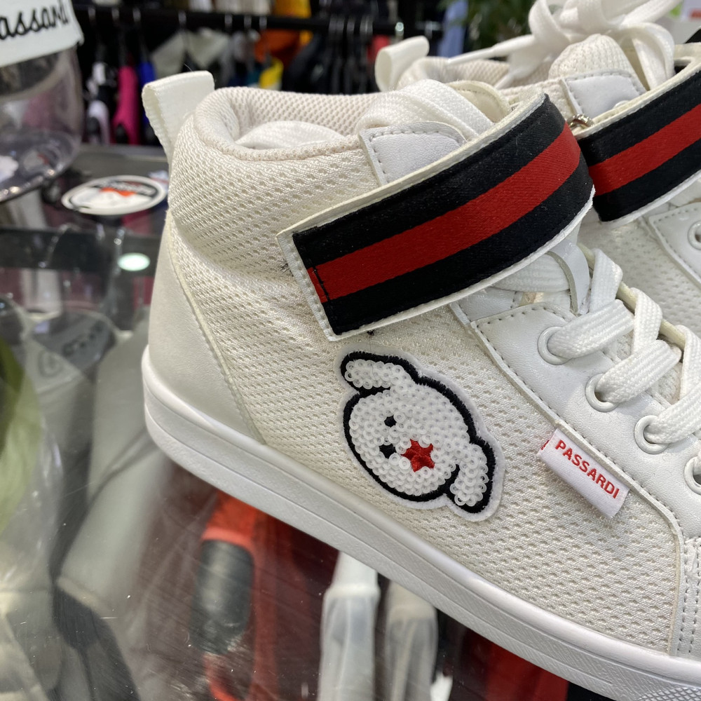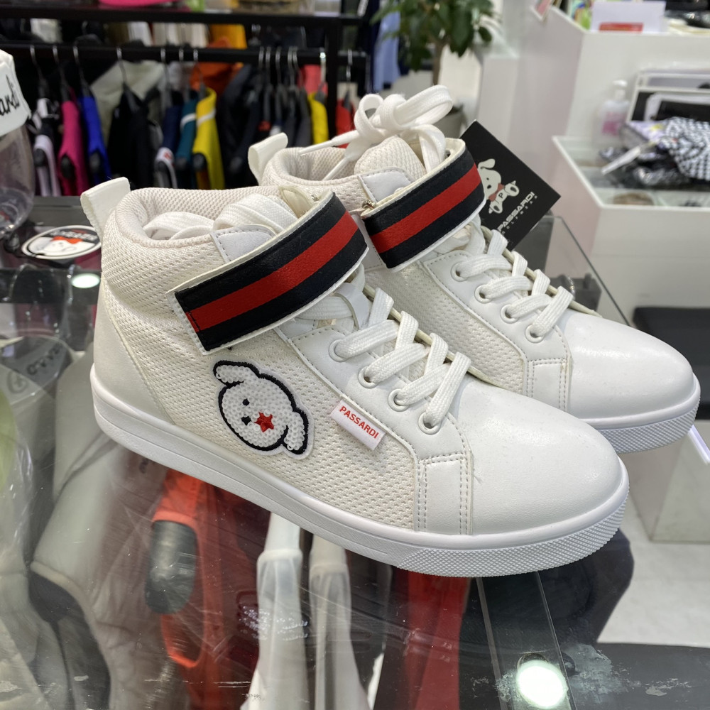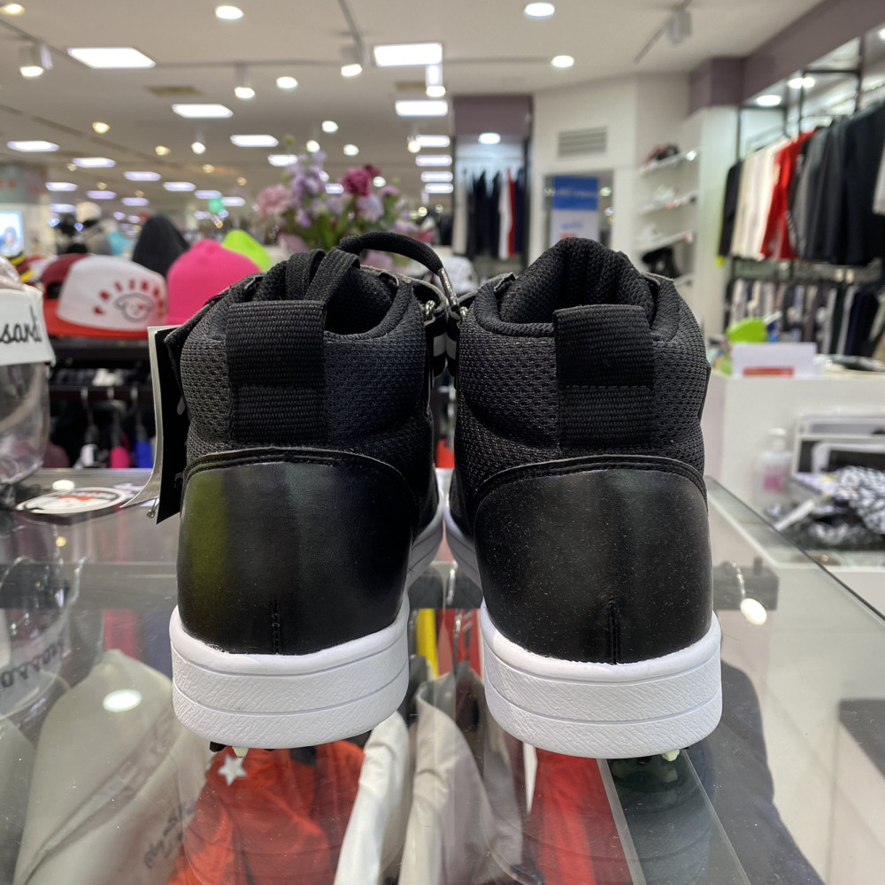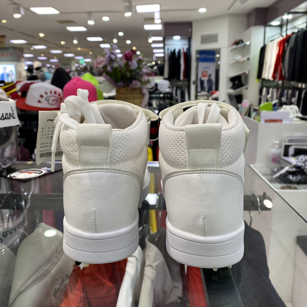 발목을 안정감 있게 잡아주는 매쉬 소재 하이탑 디자인의 여성 골프화입니다. 스마일 패치가 귀엽게 들어가있어 캐쥬얼한 느낌을 더해줍니다.