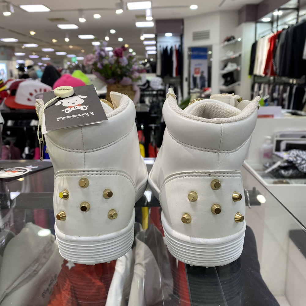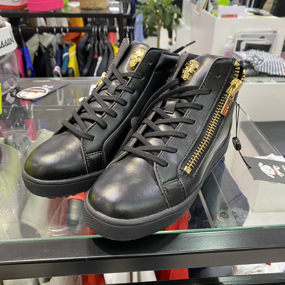 발목을 안정감있게 잘 잡아주는 하이탑 디자인의 골프화입니다. 블랙/레드/화이트 세가지 컬러가 있습니다. 지퍼 형태로 편하게 신을 수 있습니다.