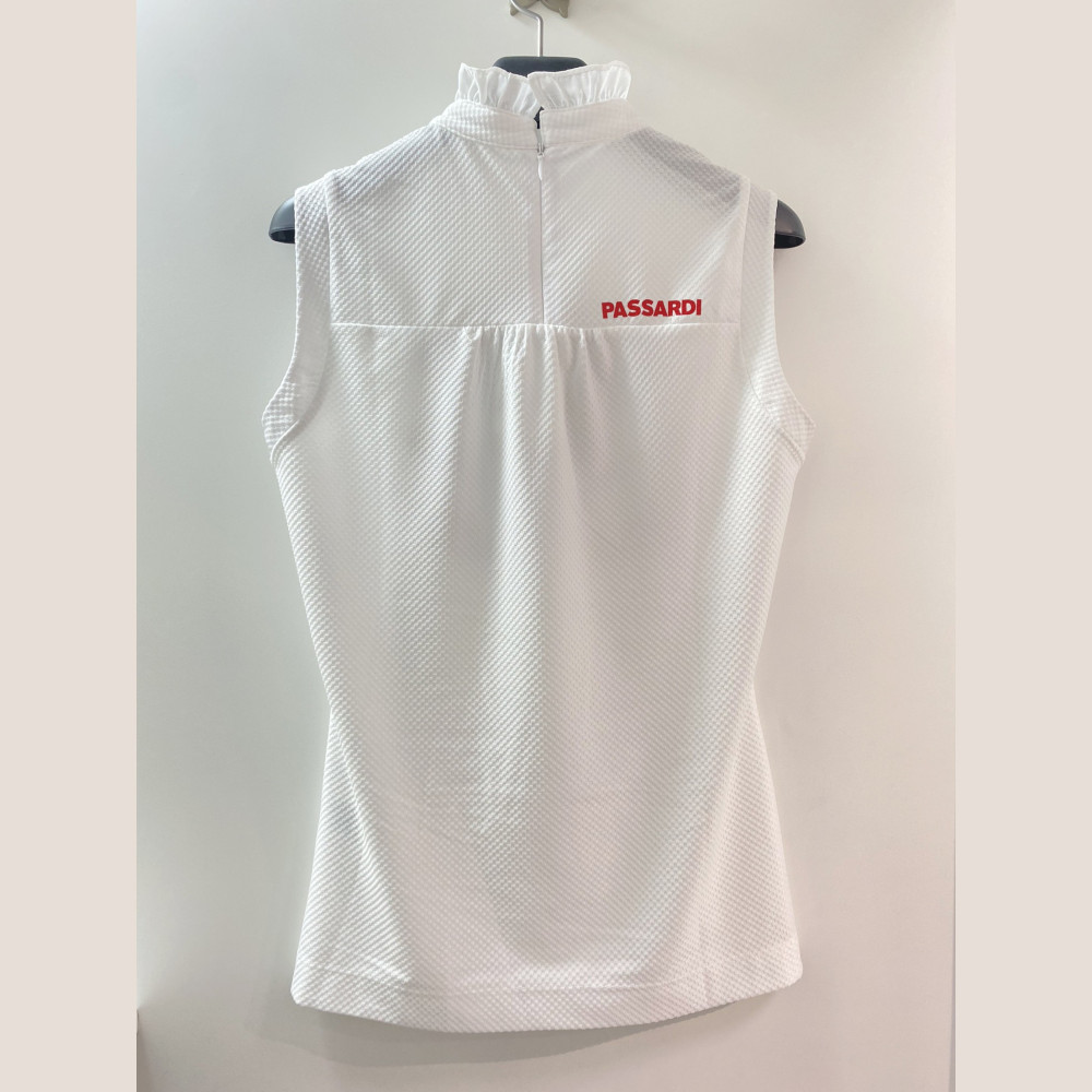 에리 부분 셔링 포인트가 들어가있어 경쾌한 느낌을 주는 민소매 티셔츠입니다. 구김이 잘 가지 않고 가벼운 원단이라 여름철 쾌적하게 착용할 수 있습니다.