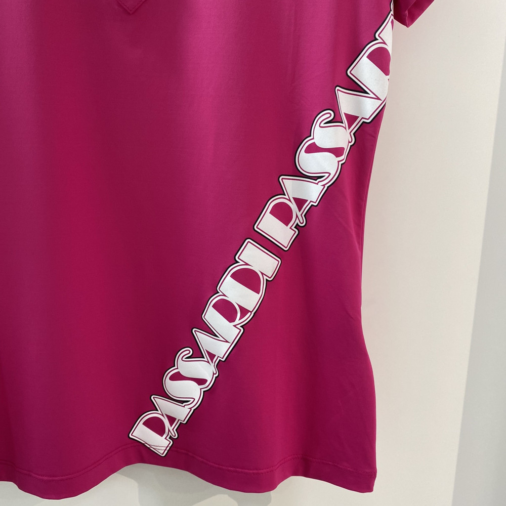 사선으로 로고 포인트가 들어간 깔끔한 느낌의 반팔 티셔츠입니다.