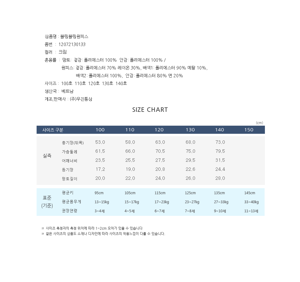 | 세탁방법 및 취급시 주의사항 | 상품페이지 참고 |