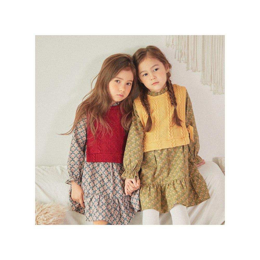 잔잔한 플라워 문양과 와인 컬러 베스트가 잘 어울리는 귀여운 원피스입니다. 베스트는 따로 활용할 수 있으며, 원피스도 단독으로 입어도 너무나 사랑스러운 원피스입니다