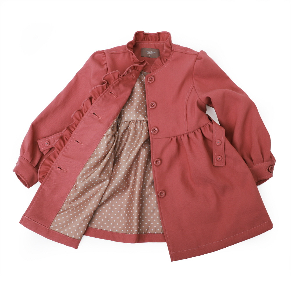 단정하면서도 프릴장식이 귀여운 러블리한 코트느낌 롱자켓입니다. 리본이 달린 벨트가 있어 더욱 다양한 코디가 가능힙니다