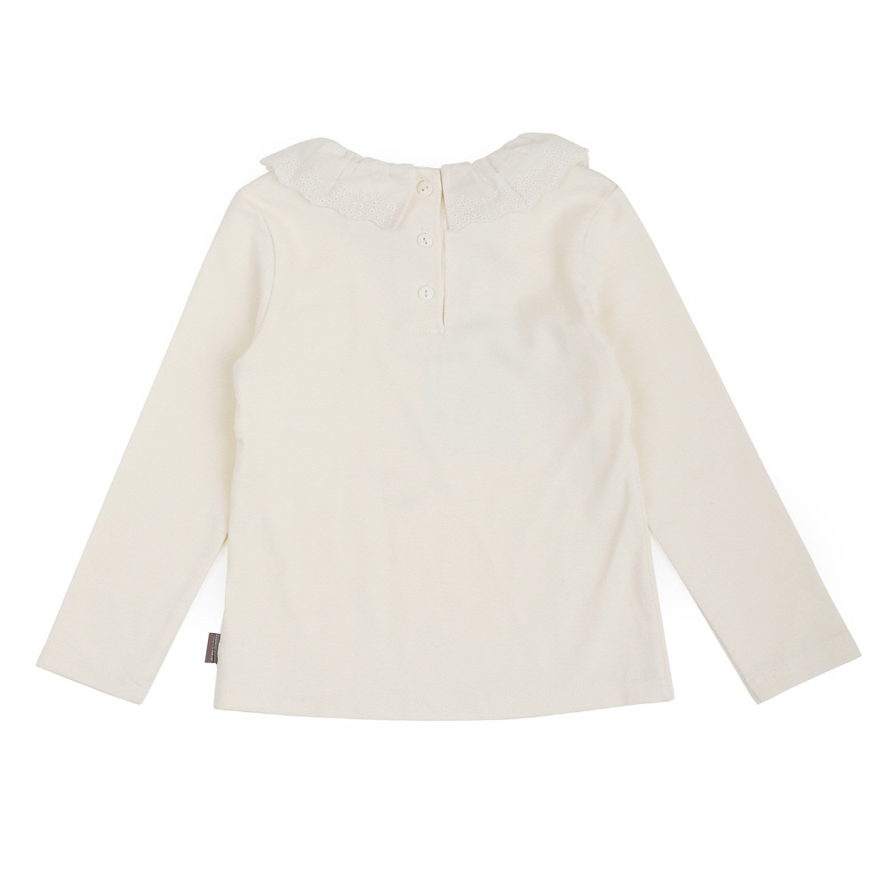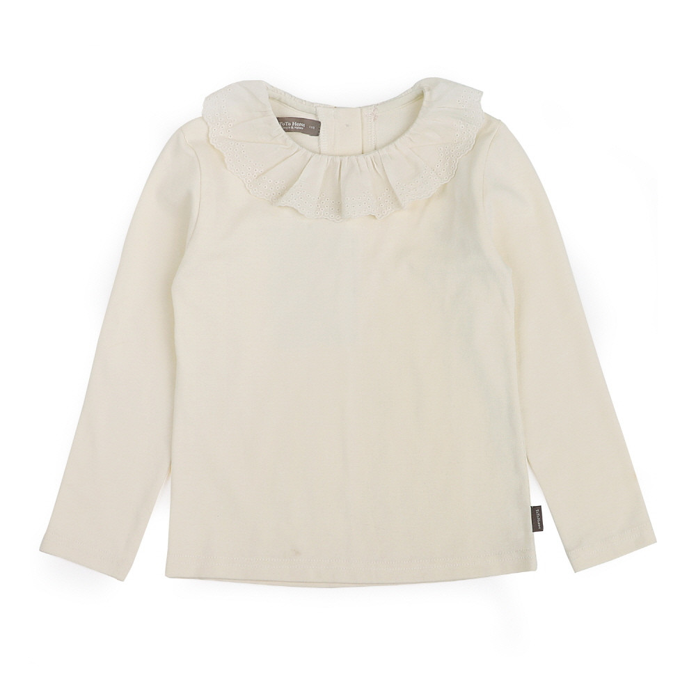 레이스프릴로 포인트를 준 활용하기 좋은 티블라우스입니다. 원피스안에 받치면 블라우스느낌이지만 편안한 다이마루원단을 사용한 카라티셔츠입니다.