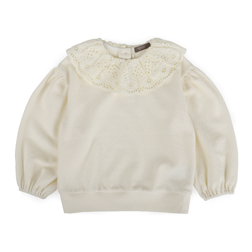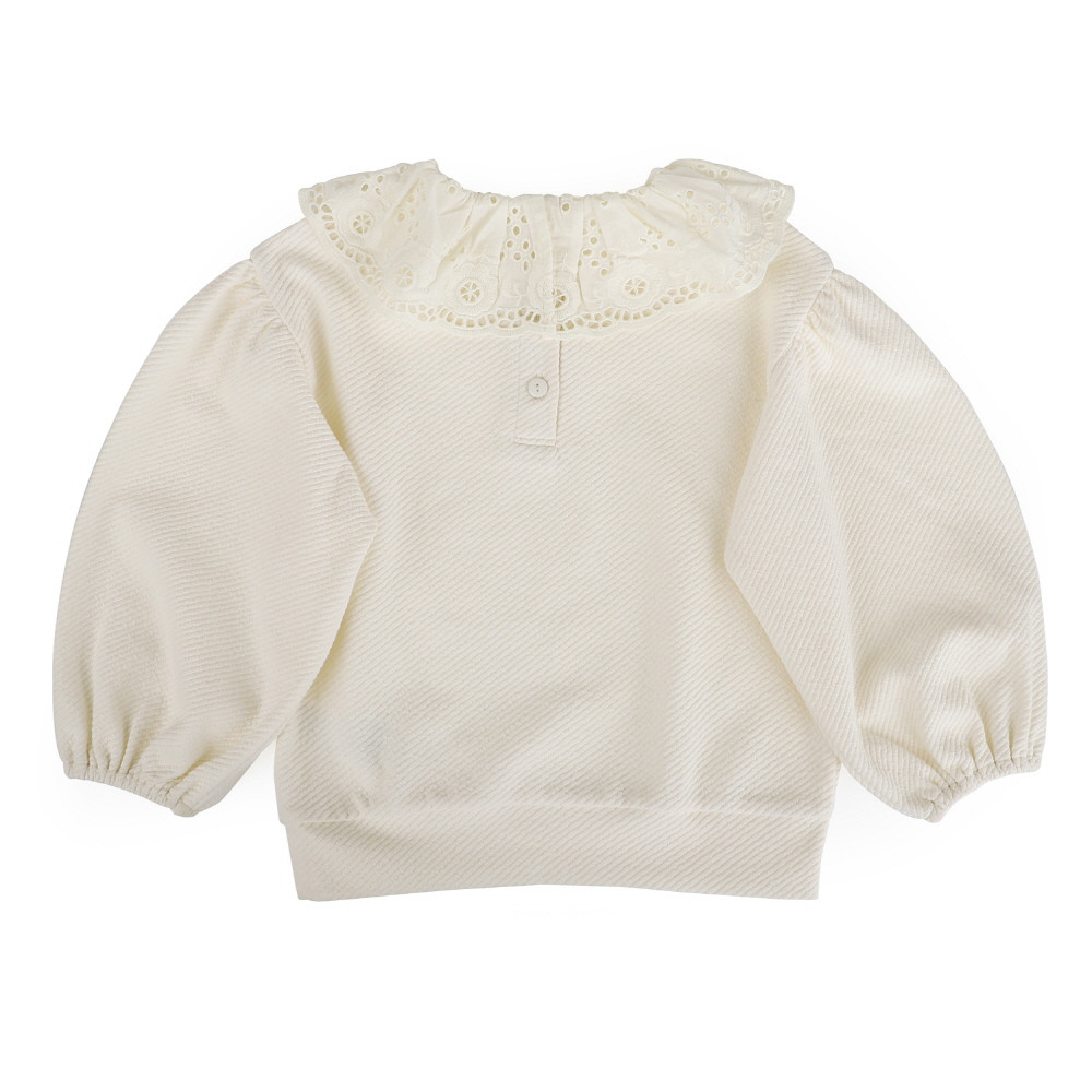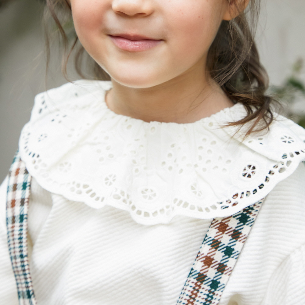 빅 레이스 프릴 카라가 러블리한 귀여운 티셔츠입니다. 점퍼스커트,스커트,팬츠 등 어디에나 잘 어울리는 블링블링한 티셔츠입니다