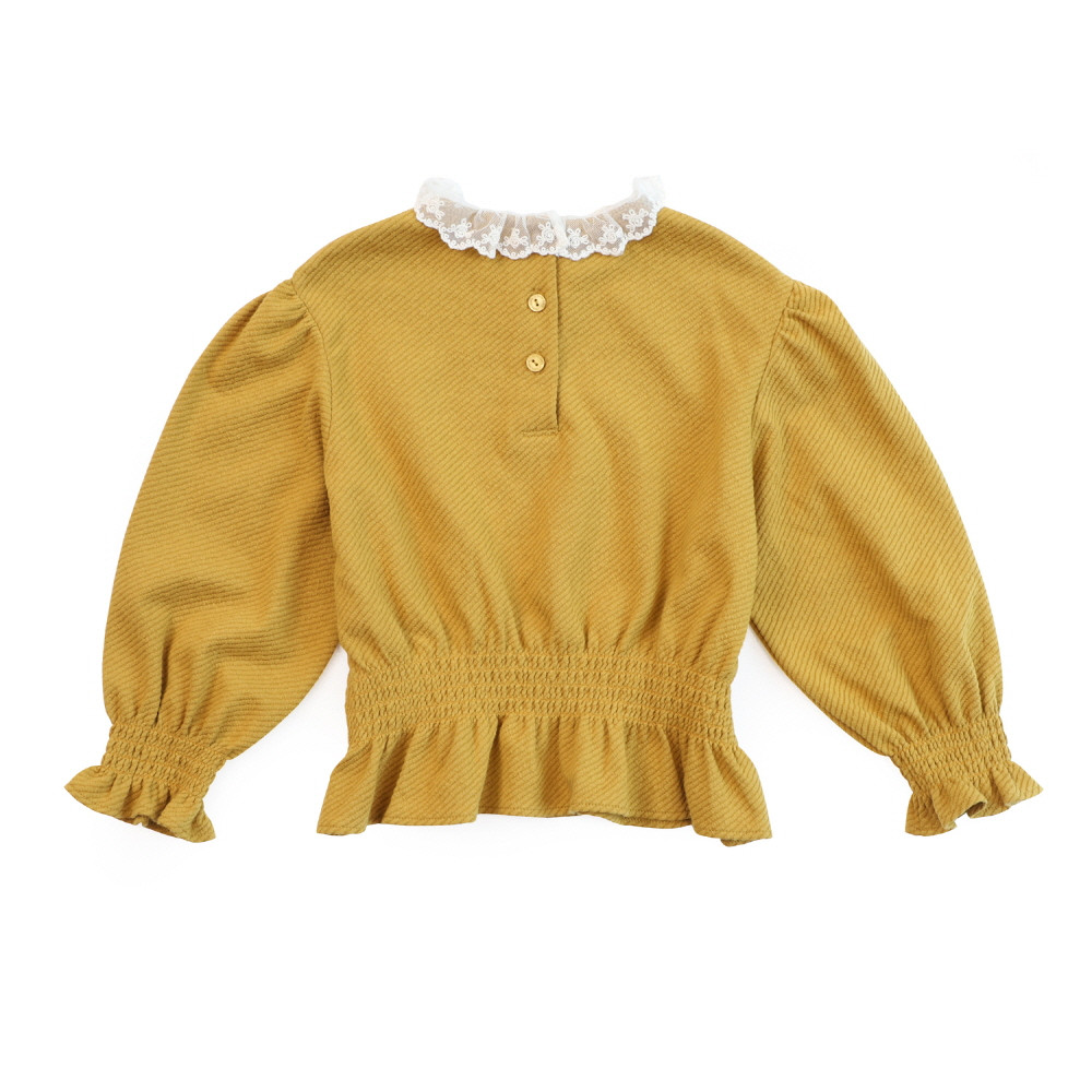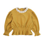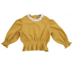 레이스카라와 소매단과 밑단의 프릴장식이 러블리한 귀여운 티셔츠입니다. 스커트나 큐롯팬츠,데님팬츠등 어떤 하의와 입어도 잘 어울리는 블링블링한 티셔츠입니다