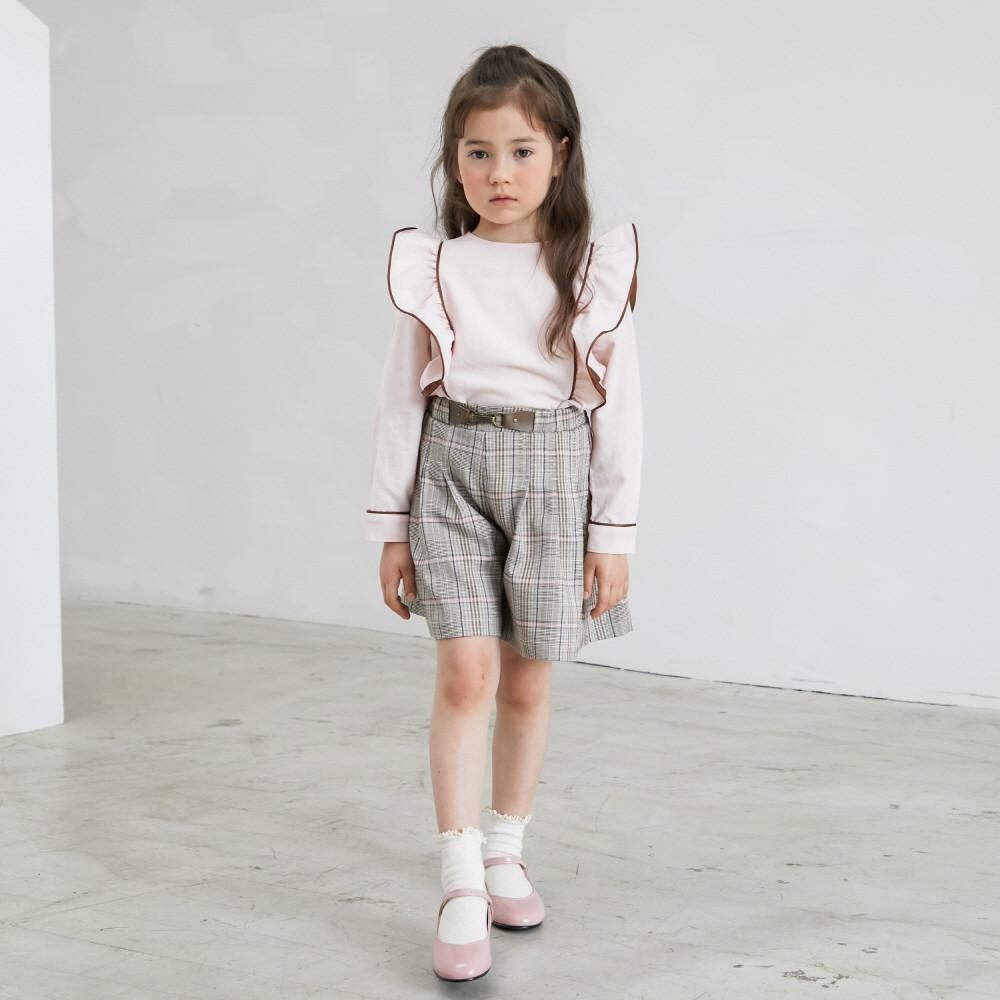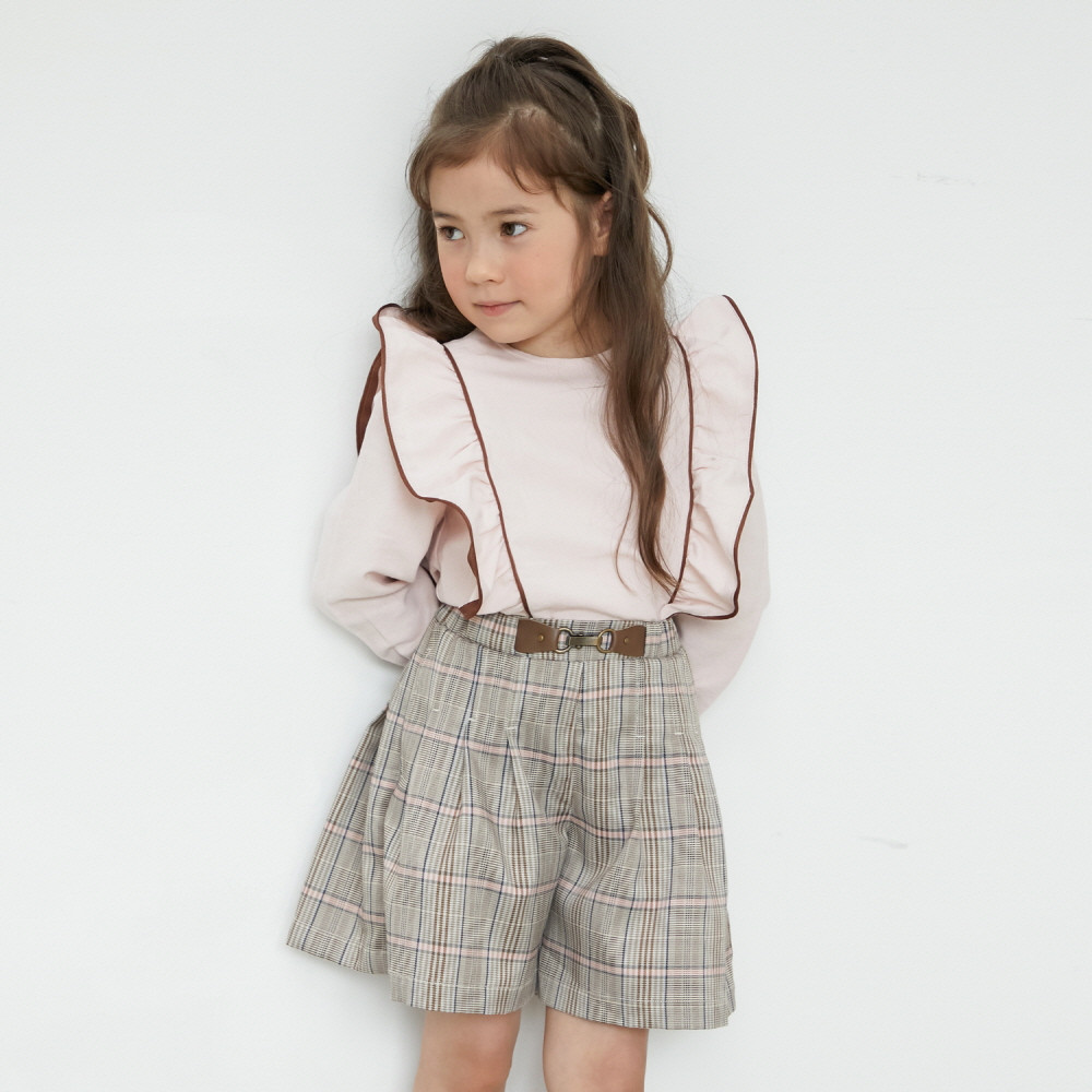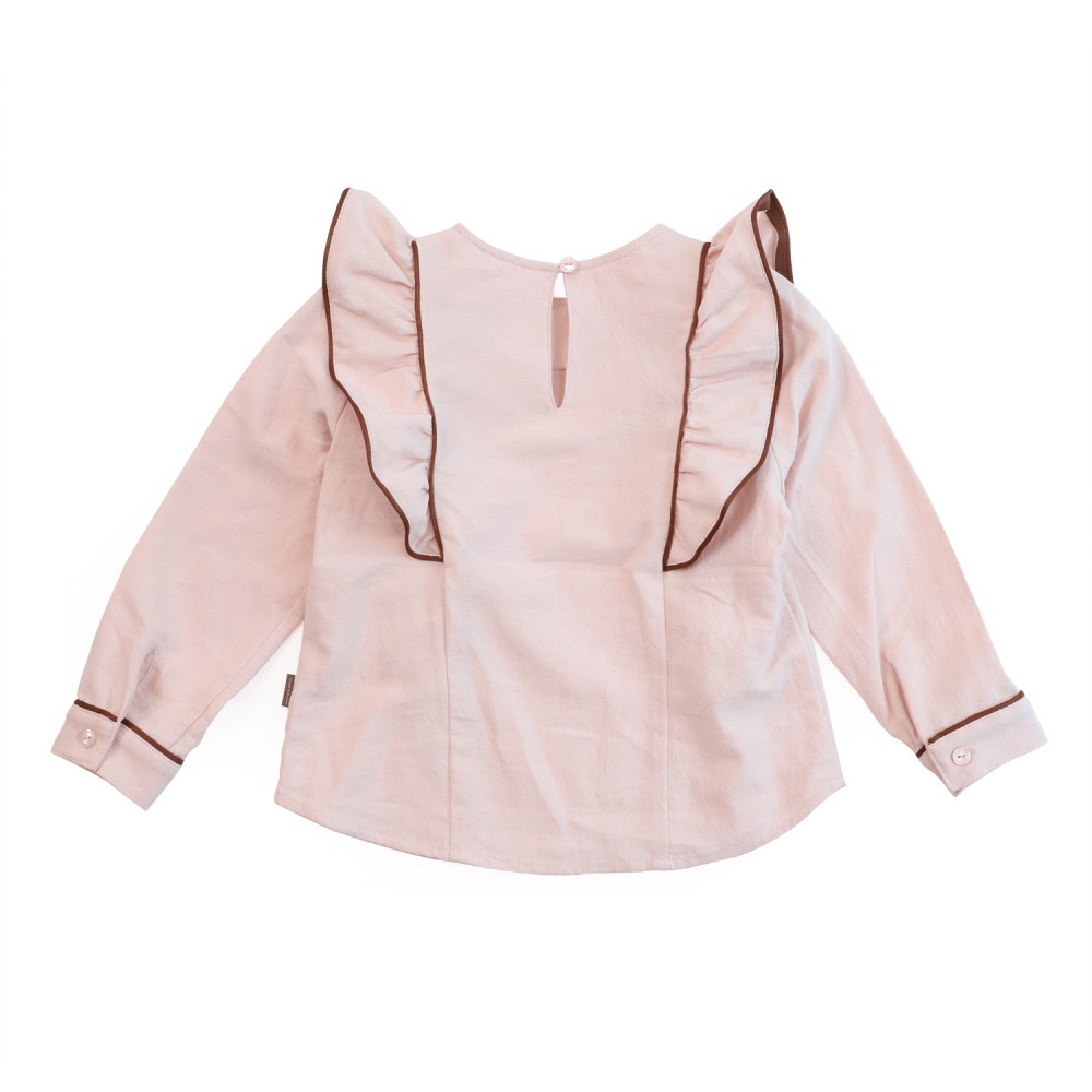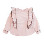 빅프릴이 러블리한 핑크 블라우스입니다. 큐롯팬츠나 스커트,데님팬츠등 활용하기 좋은 블라우스입니다