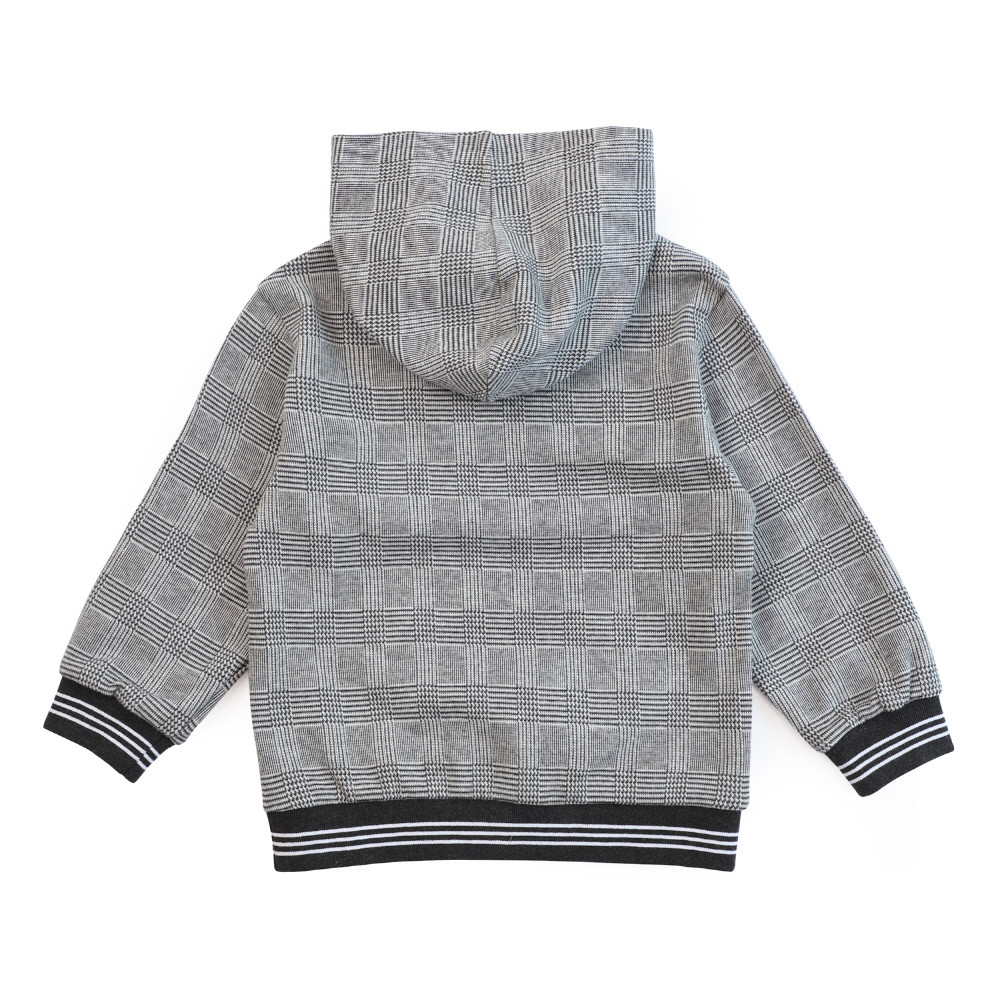 레터링프린트가 힙한 글렌 체크 후드티셔츠입니다. 면바지,데님팬츠 등 어디든 잘 어울리는 후드티입니다. 소매단과 밑단의 스트라이프가 경쾌한 느낌을 줍니다