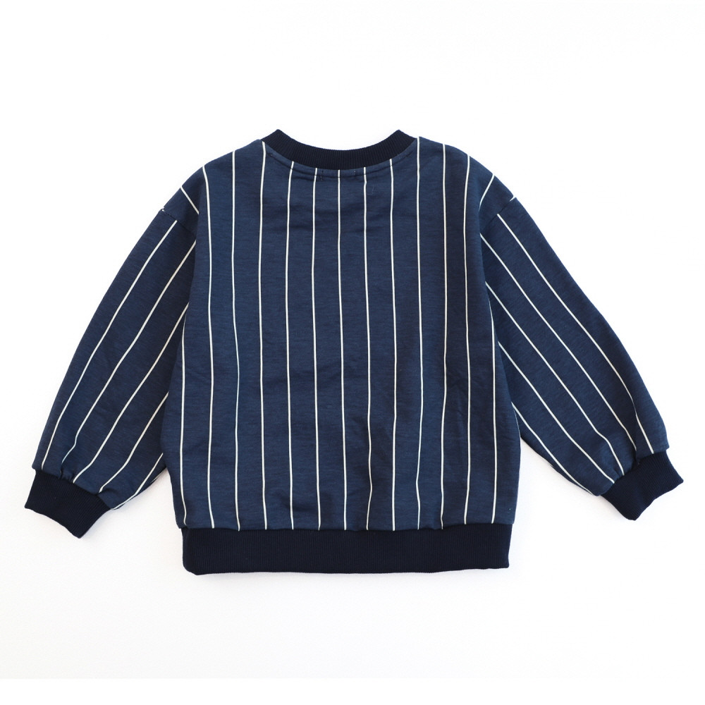네이비원단에 화이트 스트라이프가 상큼한 맨투맨입니다. 면바지,데님팬츠 등 어디든 잘 어울리는 맨투맨입니다
