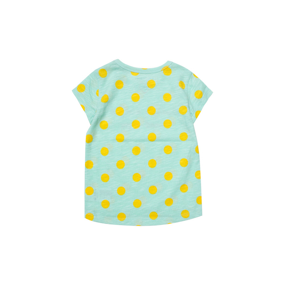 상큼한 민트칼라에 옐로우 도트전판나염칼라가 예쁜 여아 티셔츠입니다.