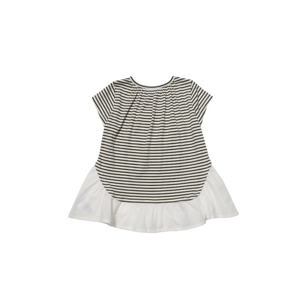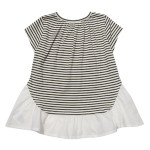 부드러운 스판 스트라이프 소재에 우븐 프릴을 믹스하여 심플한 하의와 매칭하여도 편하게 코디 할 수 있는 티셔츠입니다.