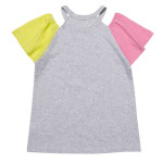 좌우의 소매가 배색인 유니크한 디테일의 티셔츠입니다.