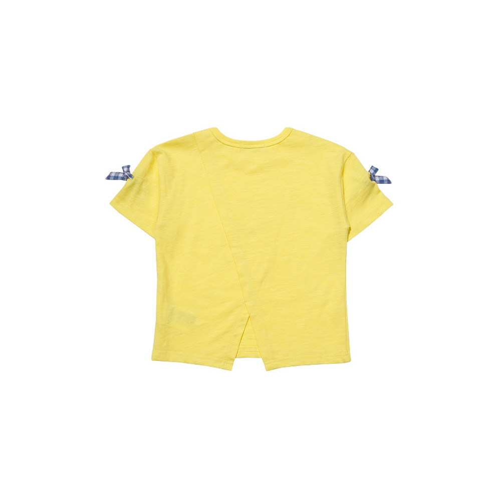 시원하고 경쾌한 옐로유컬러감의 티셔츠로 앞부분에는 귀엽고 깜찍한 포인트를 주는 티셔츠입니다.