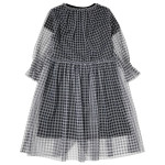 면 소재의 반팔 원피스에 망사 원피스가 레이어드 되어 있는 2겹 원피스 입니다.