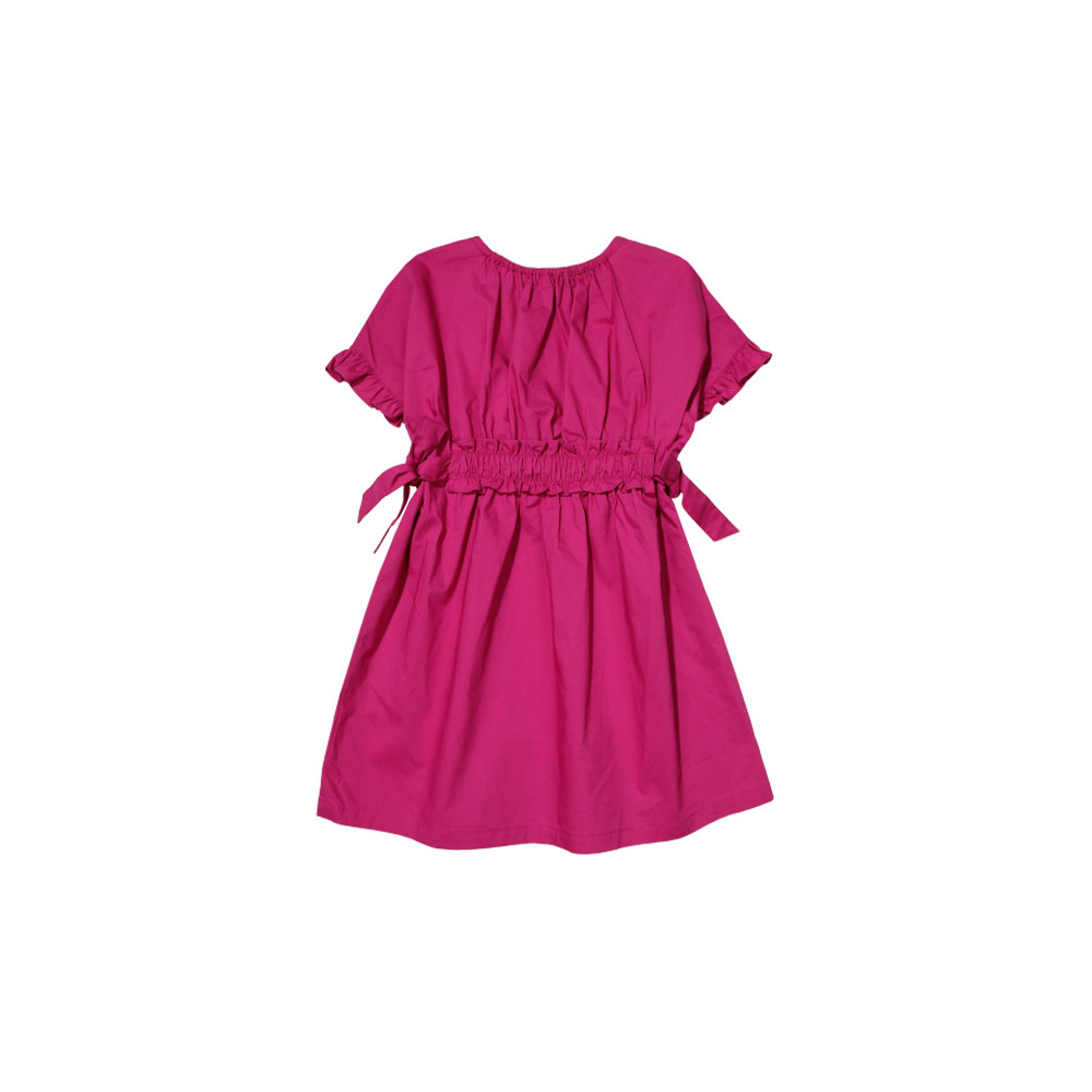앞뒤 허리의 셔링 고무단이 포인트인 자주빛 우븐 원피스입니다.