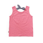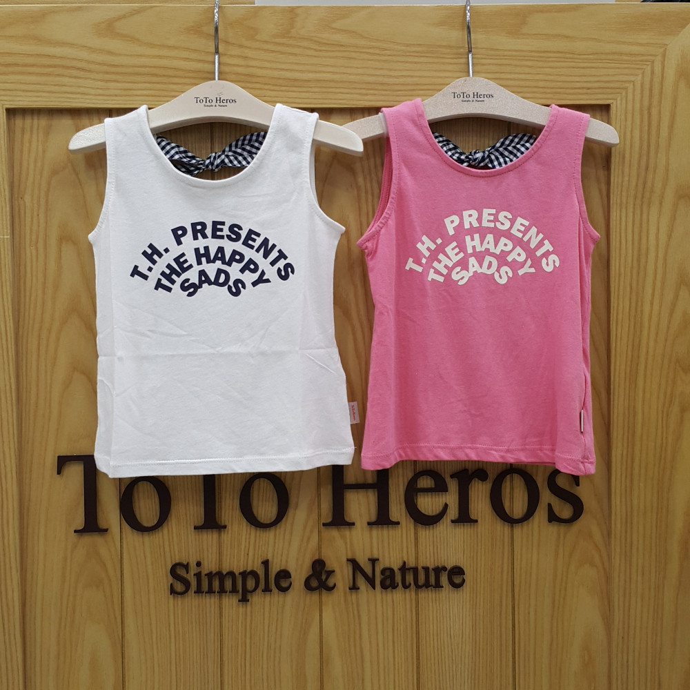 앞쪽은 시크한 레터링,뒷모습은 귀여운 리본묶음이 있는 반전있는 민소매 나시티입니다 핑크,화이트 두가지 컬러예요 사이즈 여유있게 주문하세요~