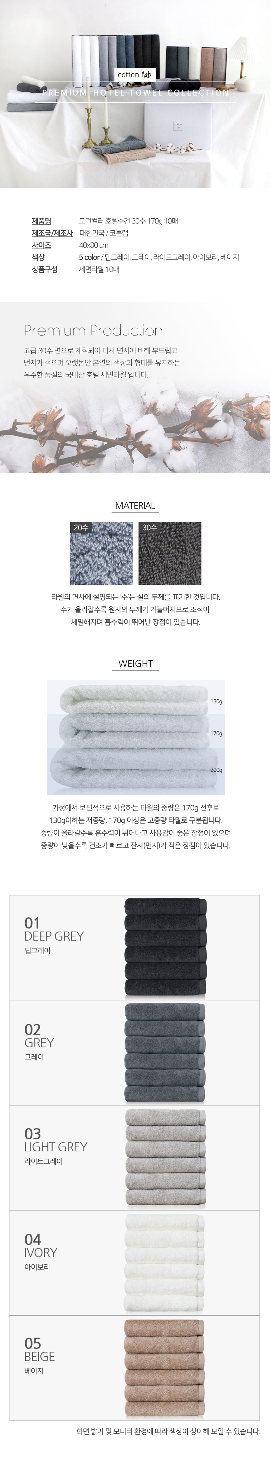 코튼랩 30수 호텔수건 170g 10매 >