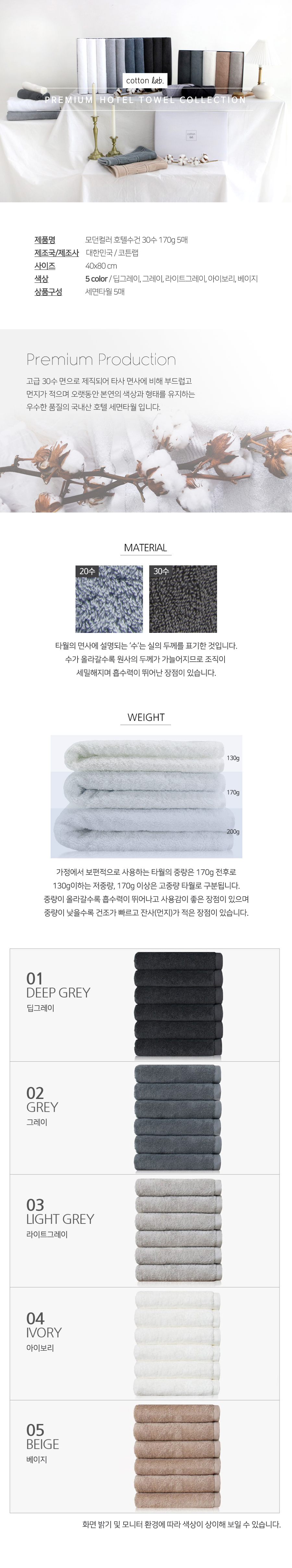 30수 호텔수건 170g 5매