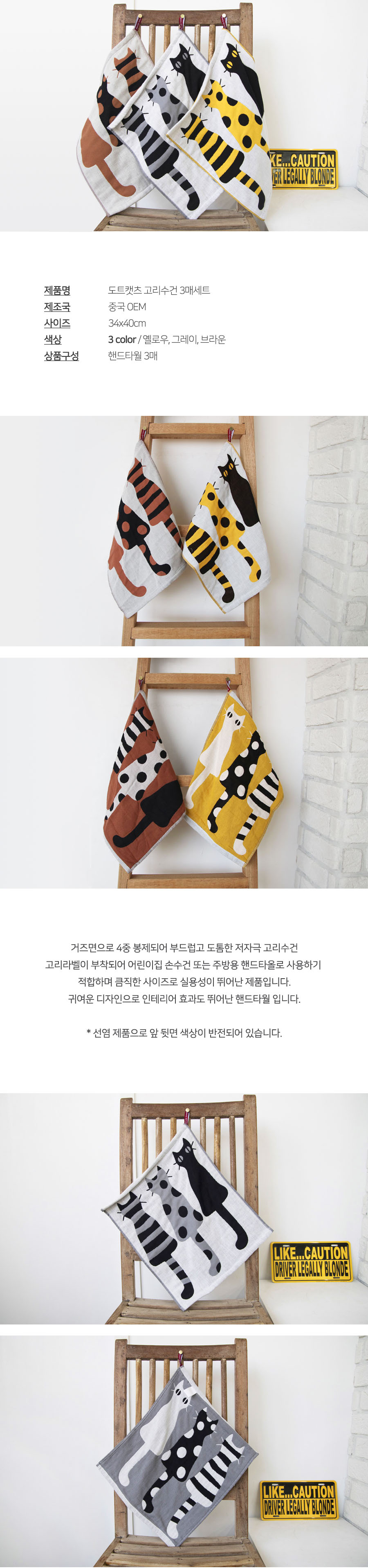 도트캣츠 어린이집수건 주방수건 3매