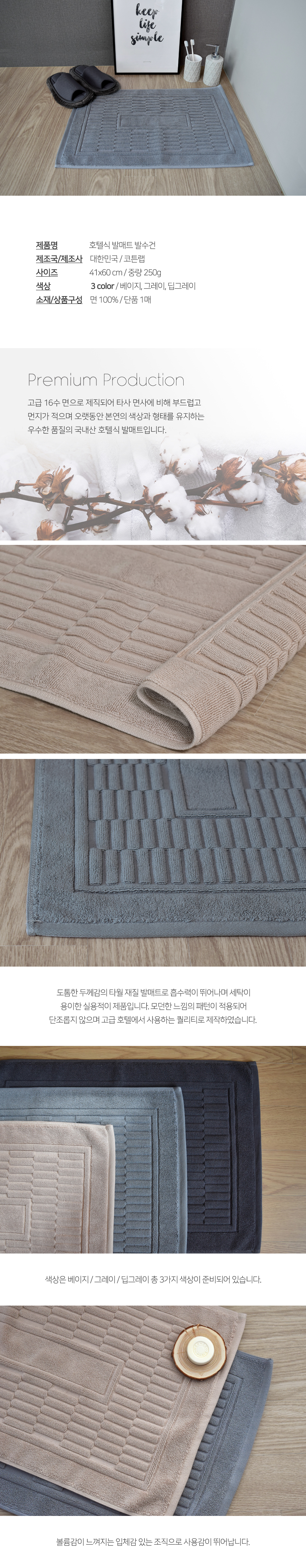 호텔식 욕실 발수건 >