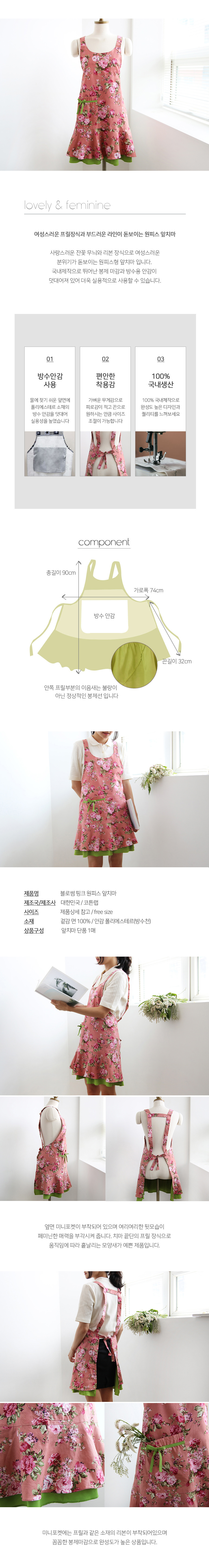 원피스 방수 앞치마 블로썸 핑크