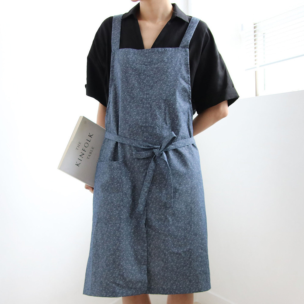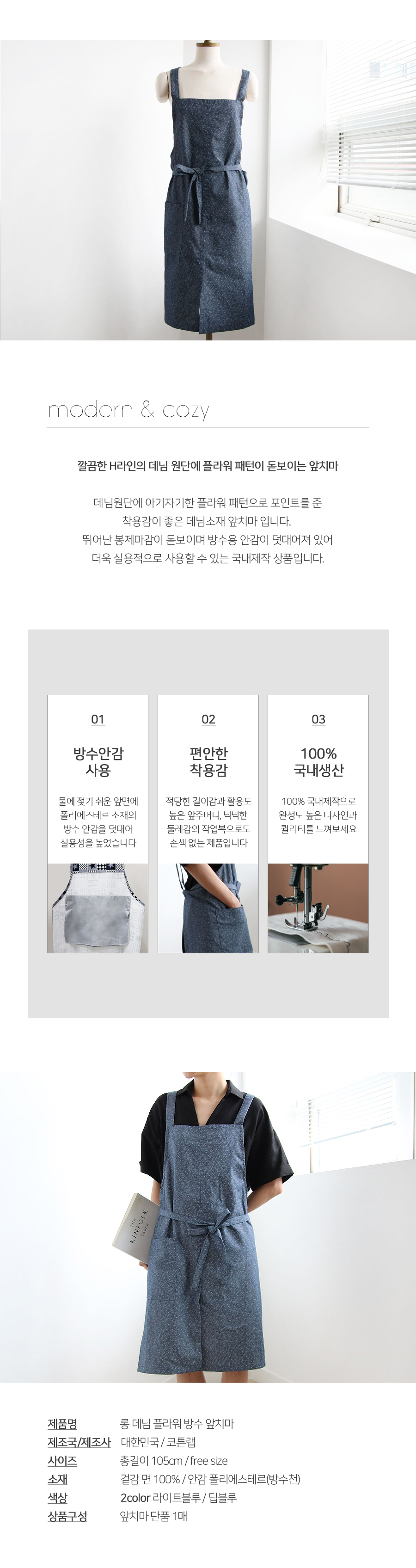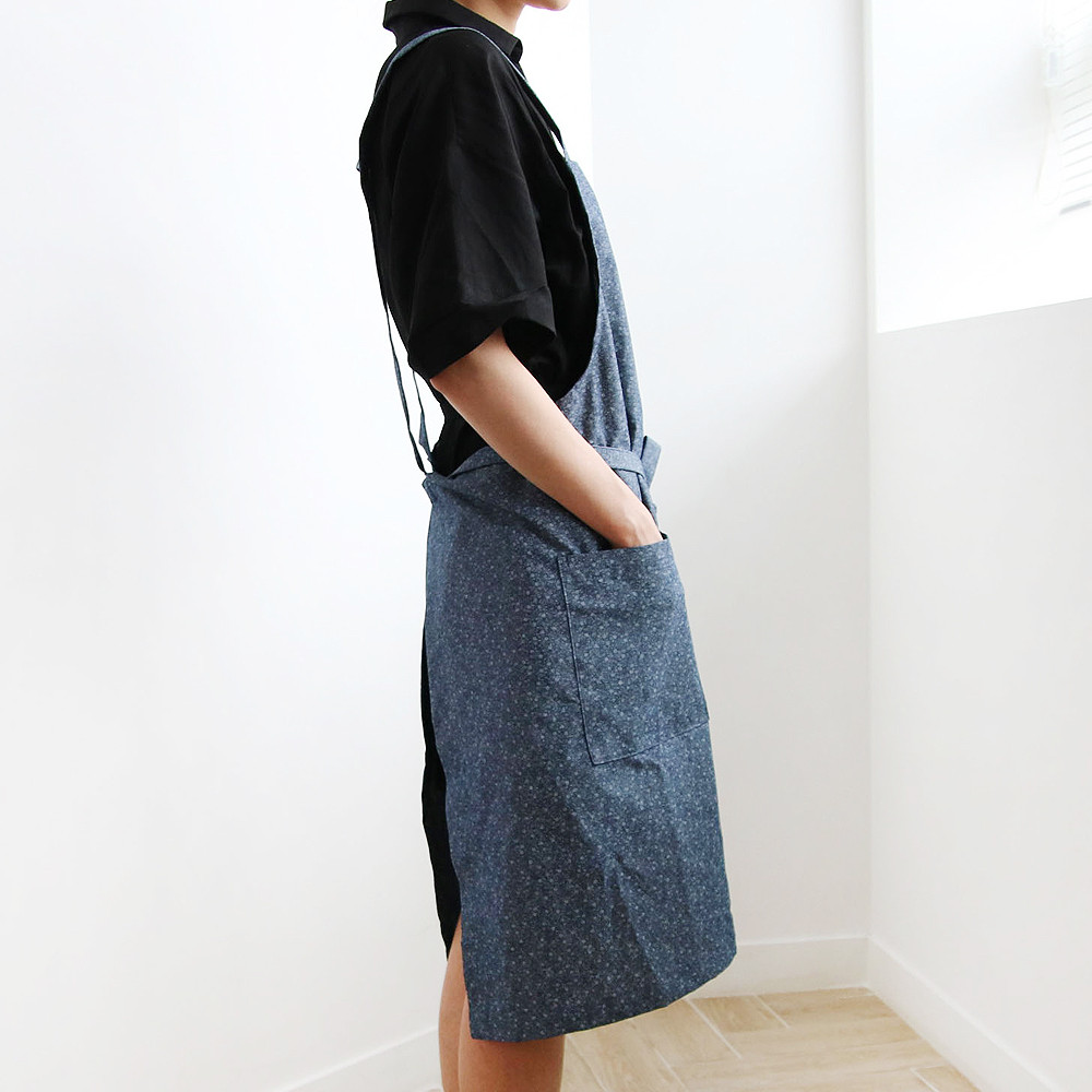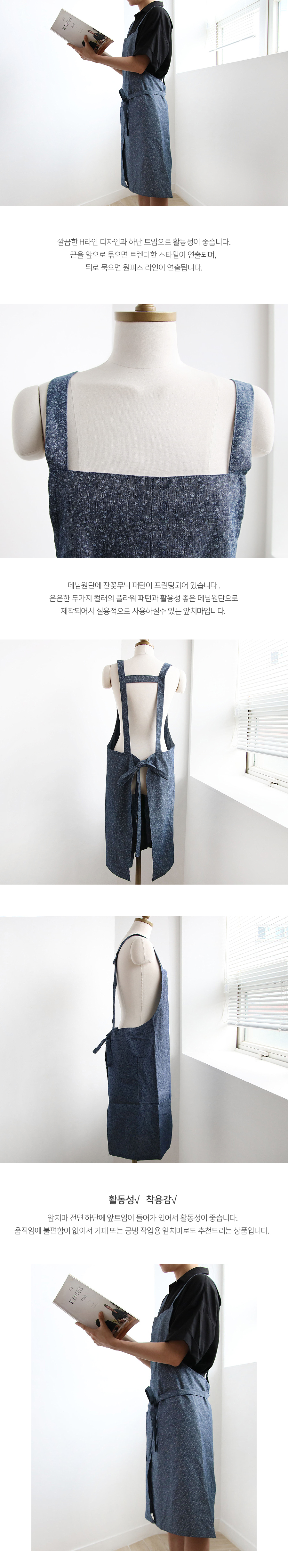 플라워 롱 데님 방수 앞치마