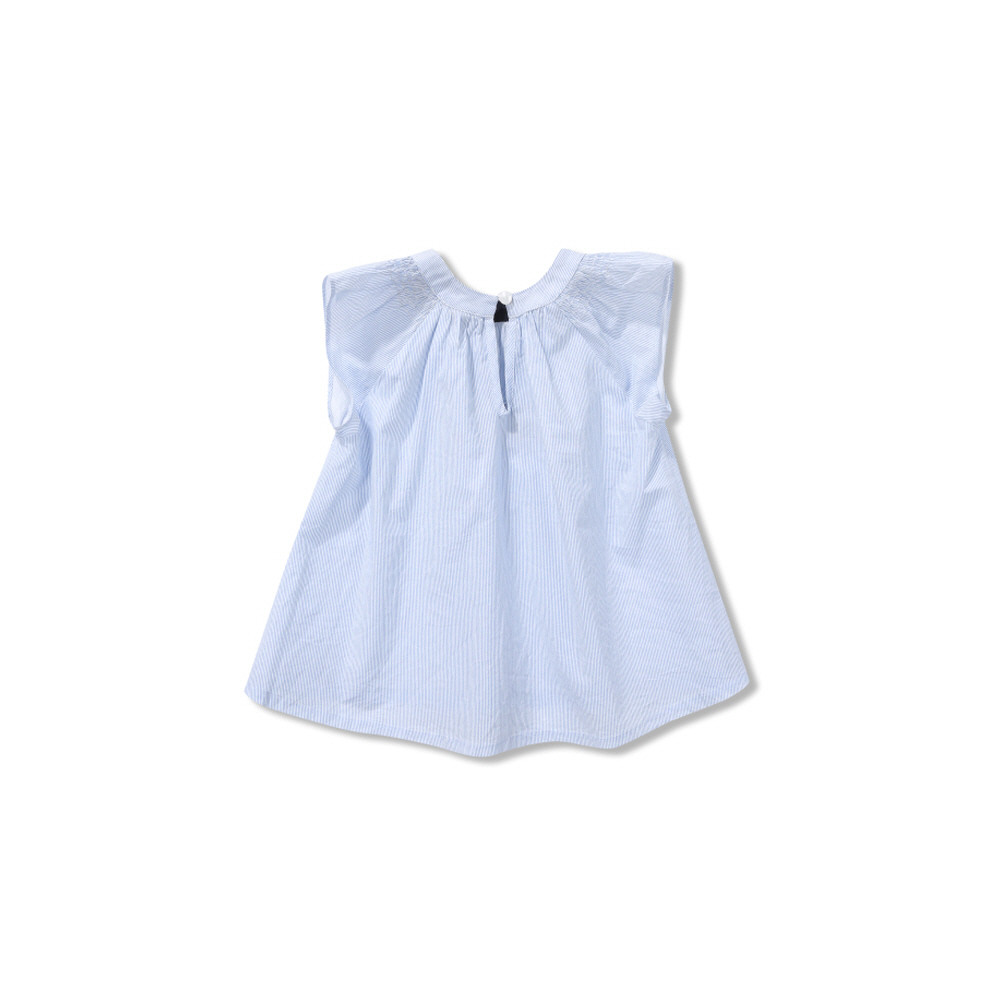 시원한 블루 나염 소재로 가슴에는 비즈장식이 들어가 있어서 하나만 입어도 포인트가 되어 좋습니다