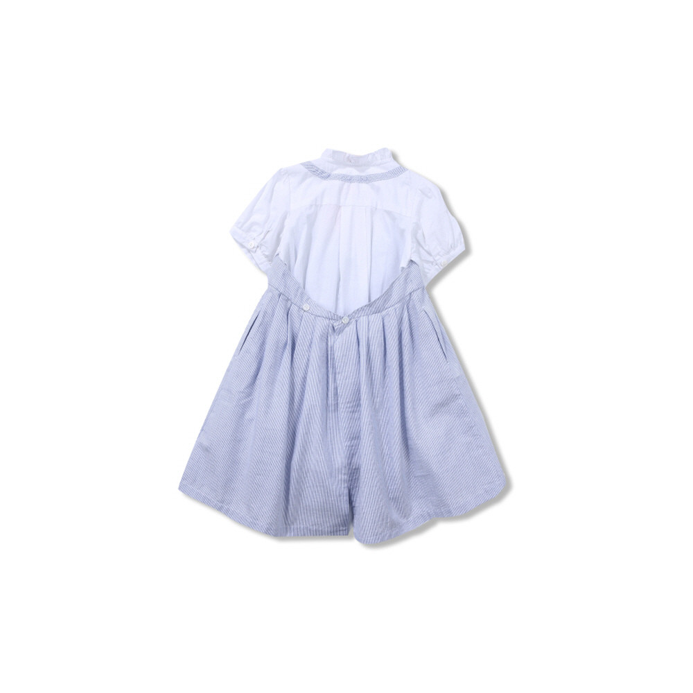 시원한 블루톤의 원피스가 안쪽에는 사랑스러운 블라우스를 코디한것 같이 디자인된 원피스 입니다