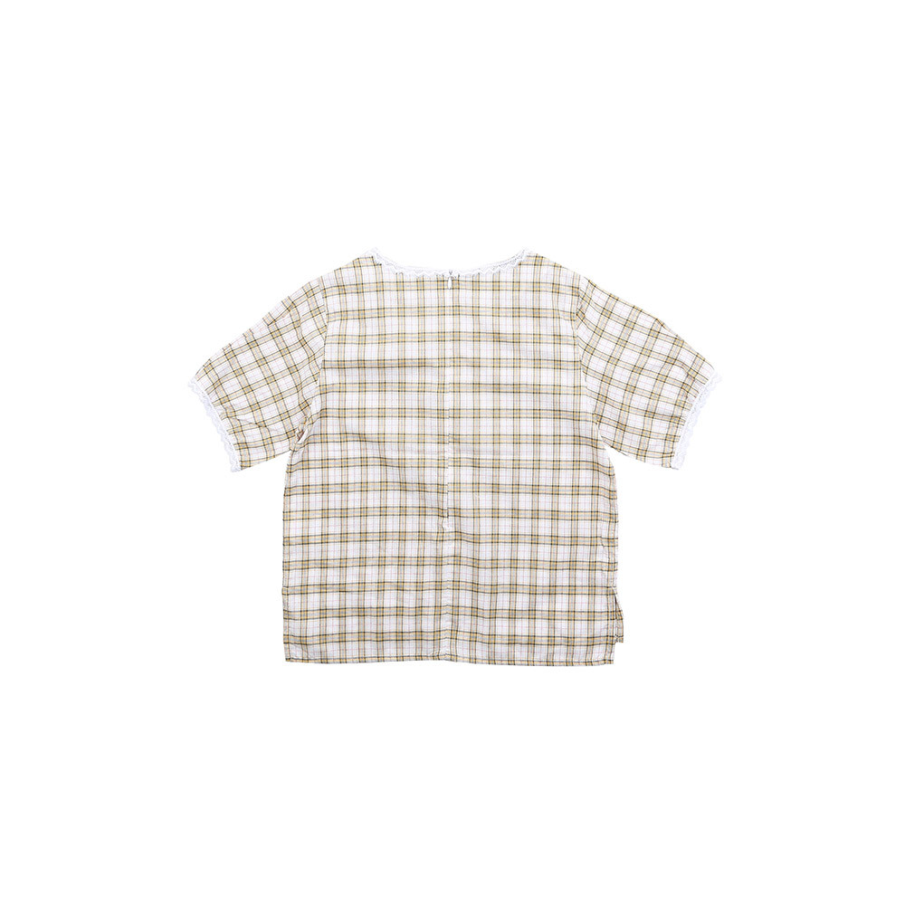 4부 스퀘어 넥 체크 블라우스 19B1656