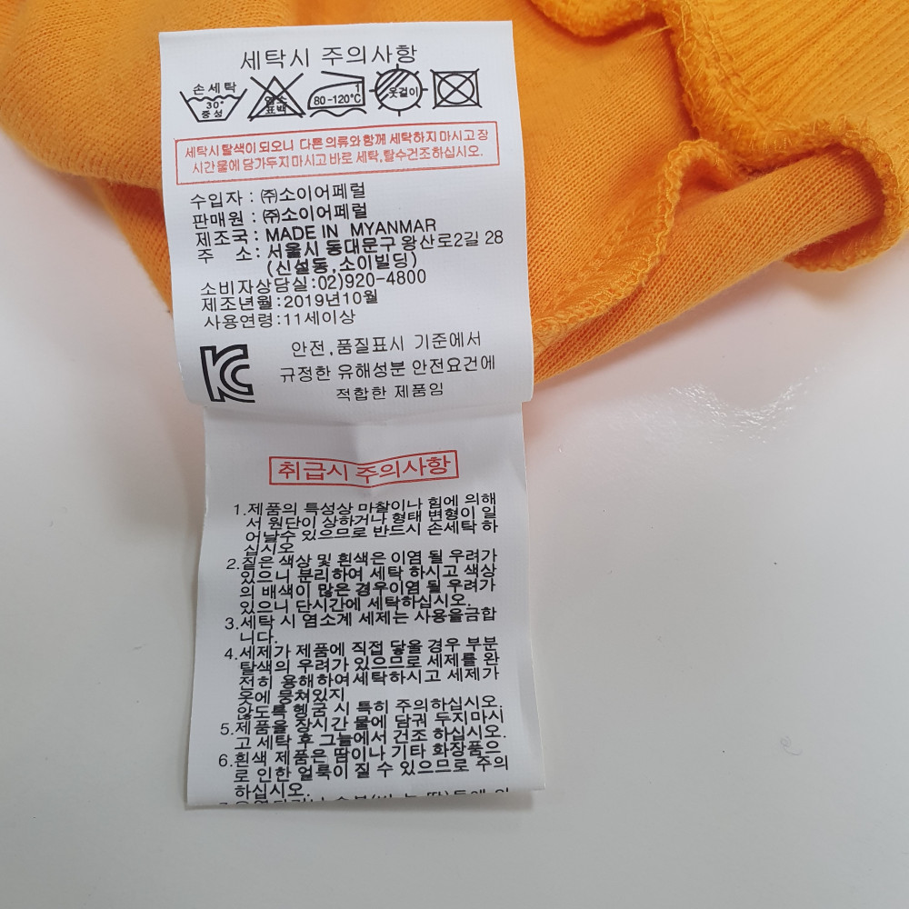 칼라 로고 캐쥬얼 맨투맨 티 20a0451-OR > 유아동/출산 > 유아동의류 > 주니어여아의류 >