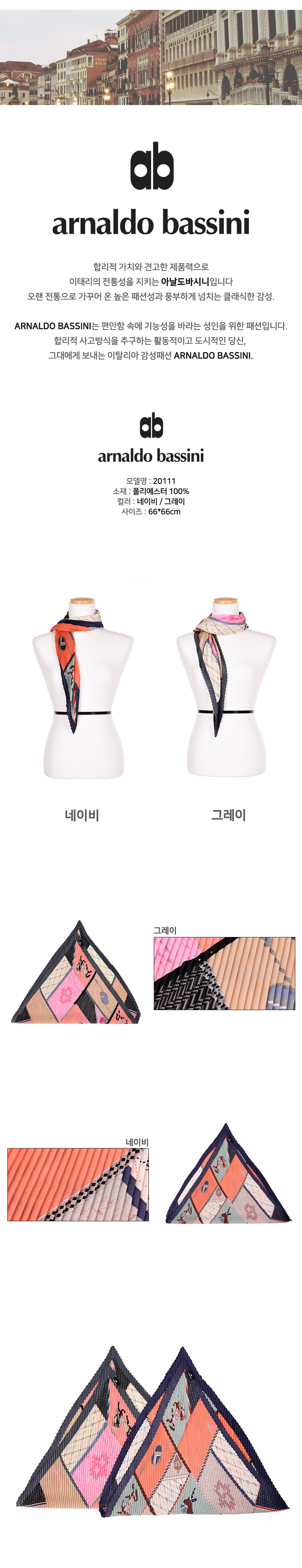 아날도바시니 플리츠 주름 사각 스카프 20113