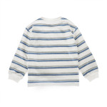 레이온 혼용으로 매우 부드러운 느낌을 주는 스트라이프패턴 티셔츠입니다. 소프트블루컬러 스트라이프 패턴이 상큼한 청바지,면바지 어디든 코디하기 편한 티셔츠입니다