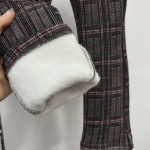 빈티지한 무드의 브라운 컬러의 체크 패턴 기모 레깅스입니다. 보아 퍼 안감으로 되어 있어 따뜻하게 입을 수 있습니다.