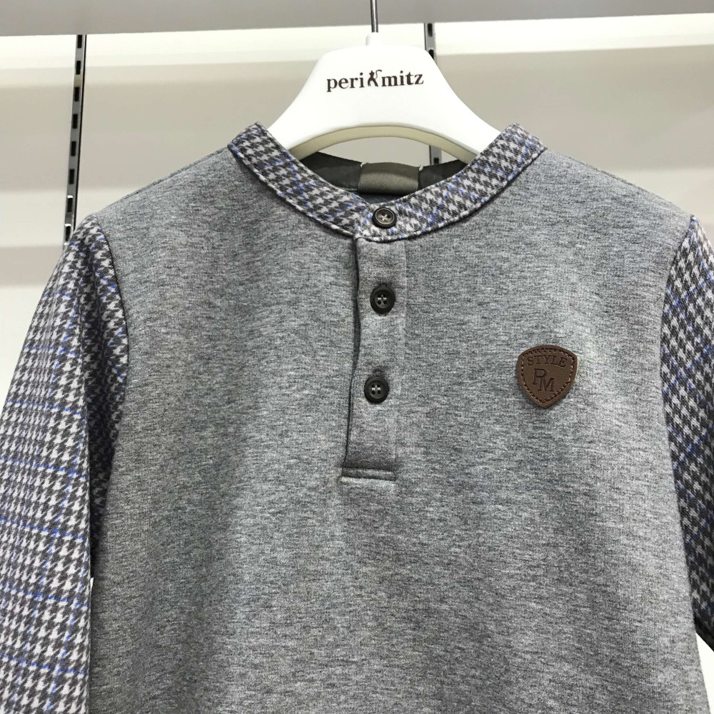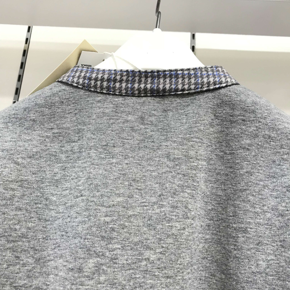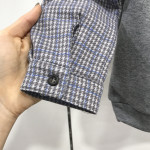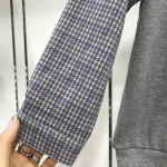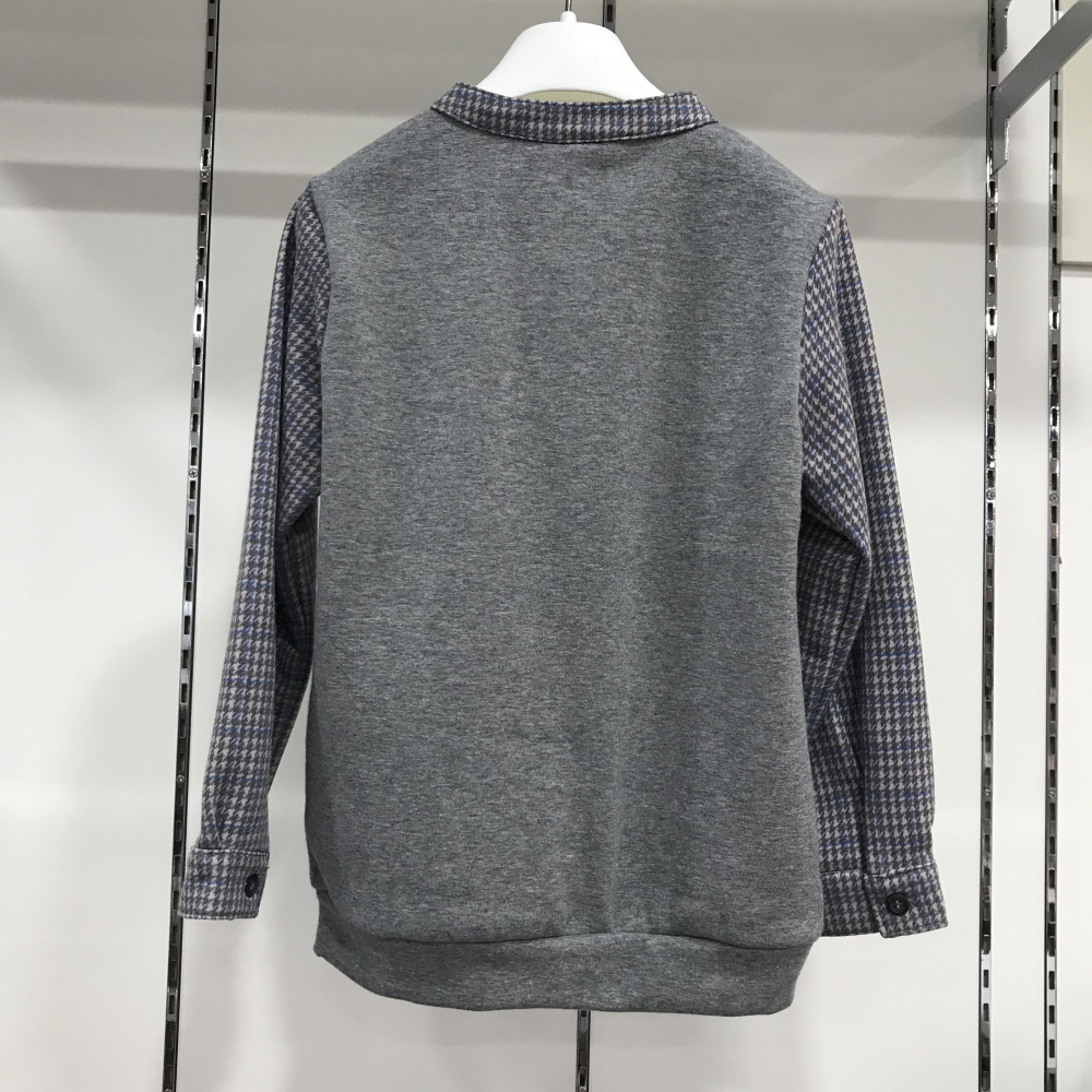 댄디한 느낌의 차이나카라 긴 팔 티셔츠입니다. 팔 부분은 체크 패턴으로 되어 있습니다.