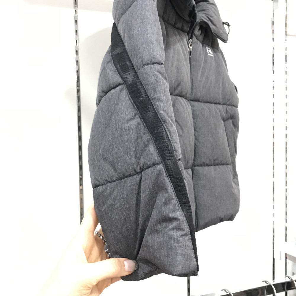 여아용 하이넥 웰론 패딩 자켓 멜란지 그레이 컬러입니다.