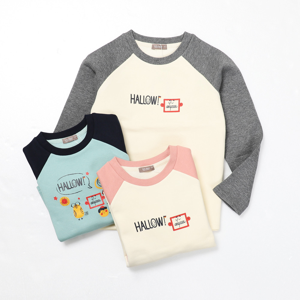 찬바람이 불때,따뜻하게 입을 수 있는 부드러운 감촉의 기모티셔츠입니다. 100,110,120 사이즈는 귀여운 일러스트가 그려져있고, 130,140,150 사이즈는 깔끔한 시크한 디자인입니다