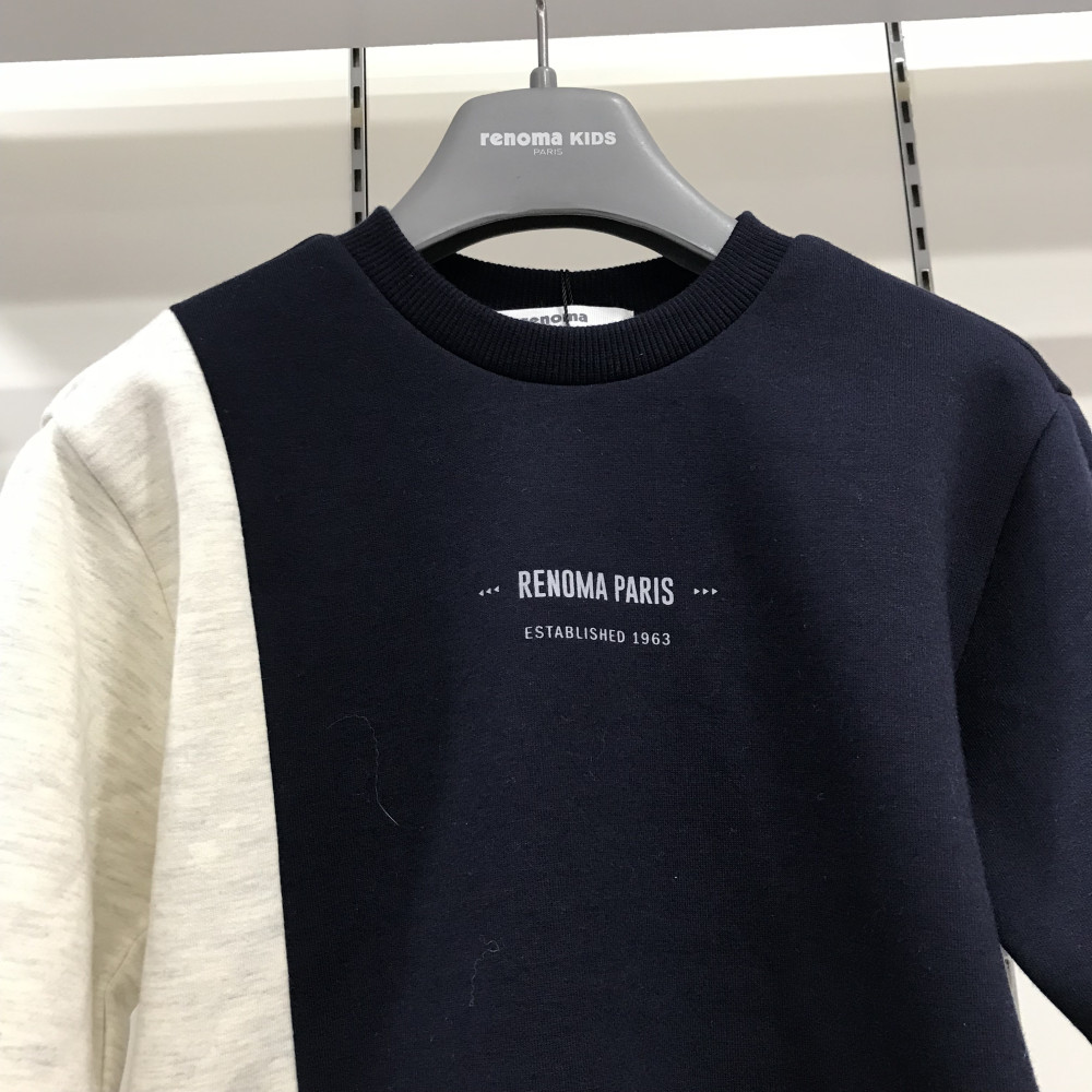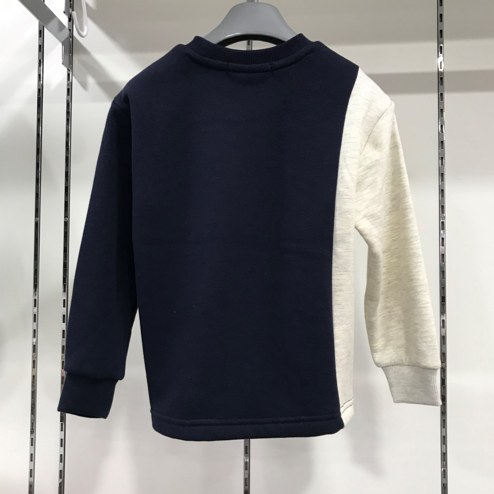 남아용 맨투맨 티셔츠입니다. 스트라이프 세로 컬러 배색이 들어가 있습니다.