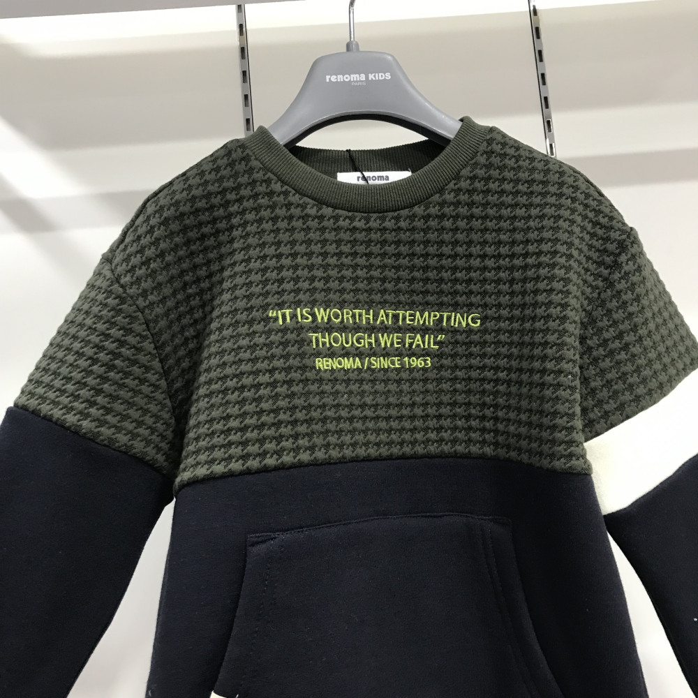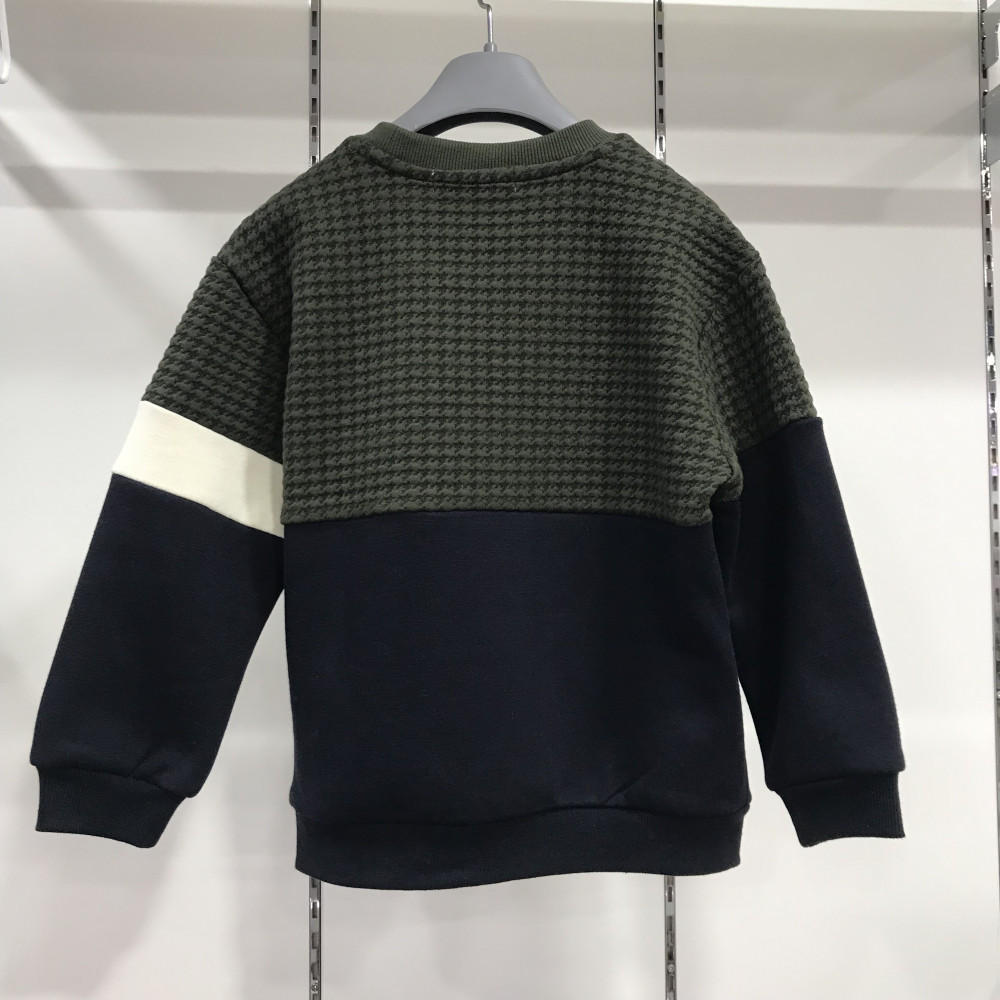 누빔지가 포인트 배색으로 들어가 있는 남아용 맨투맨입니다.