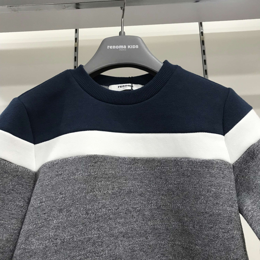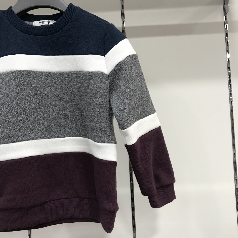 따뜻한 컬러감이 느껴지는 남아용 컬러 블록 맨투맨 티셔츠입니다.