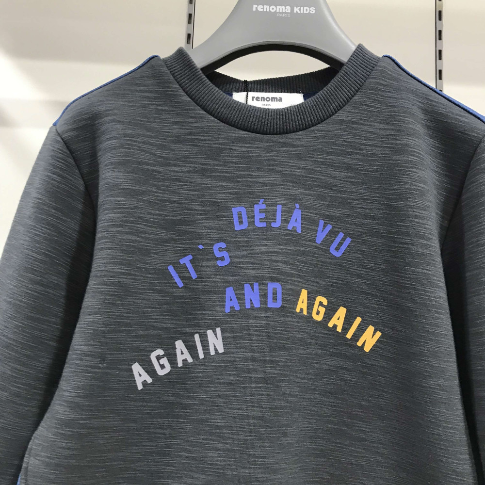 뒷부분에 배색 포인트가 들어가있는 남아용 맨투맨입니다.