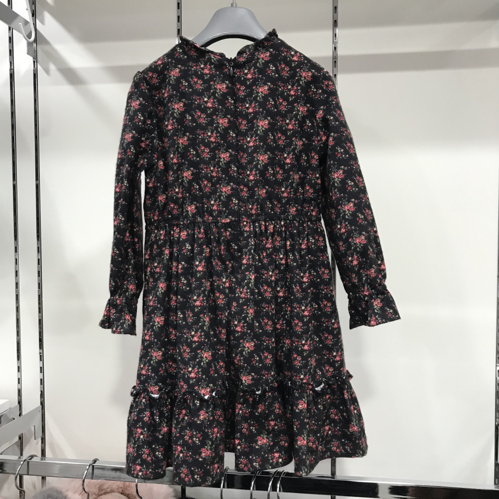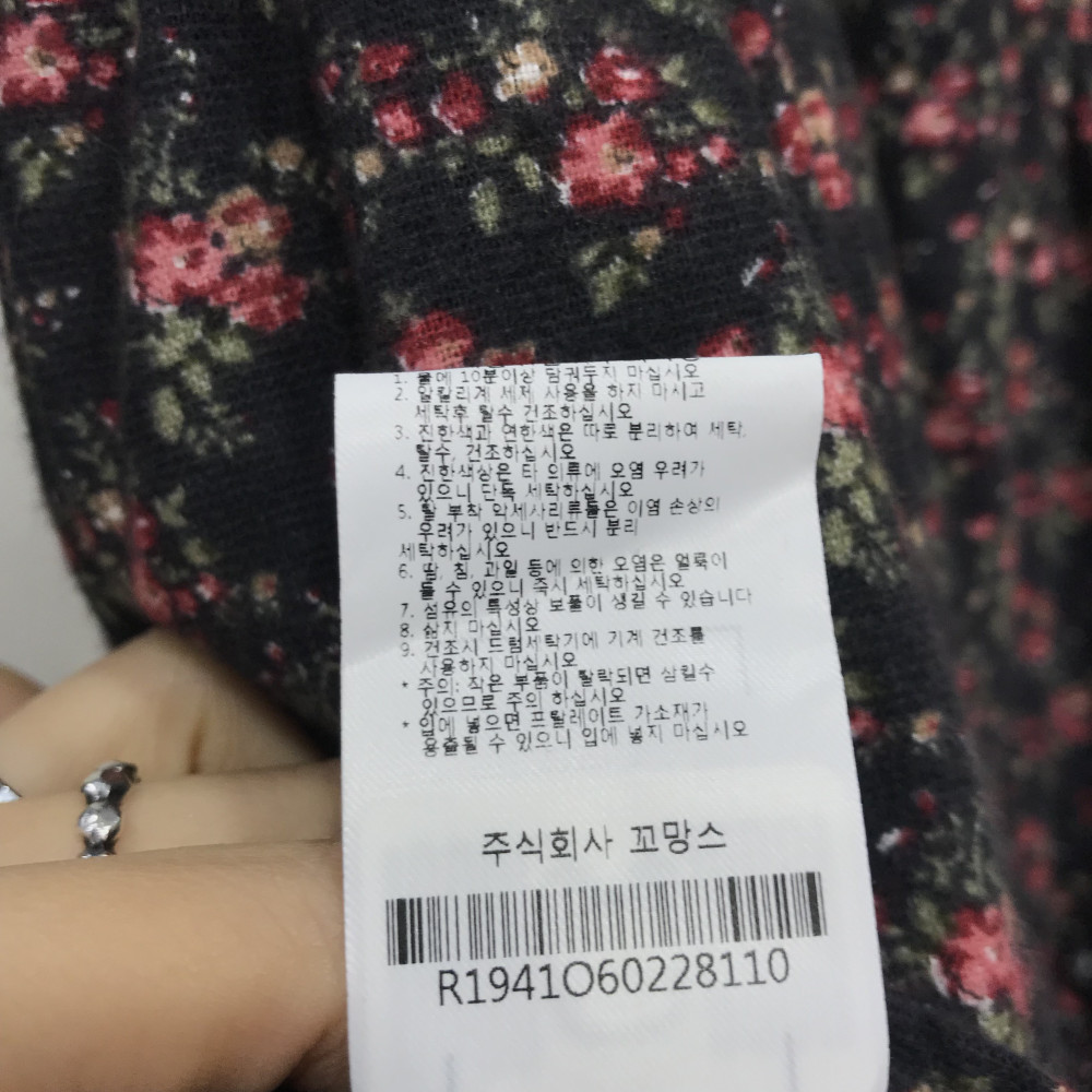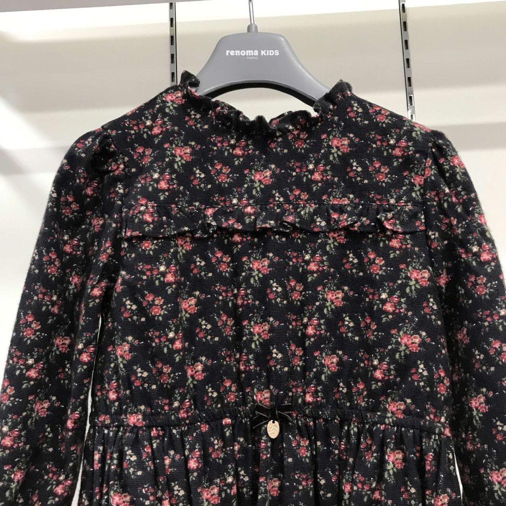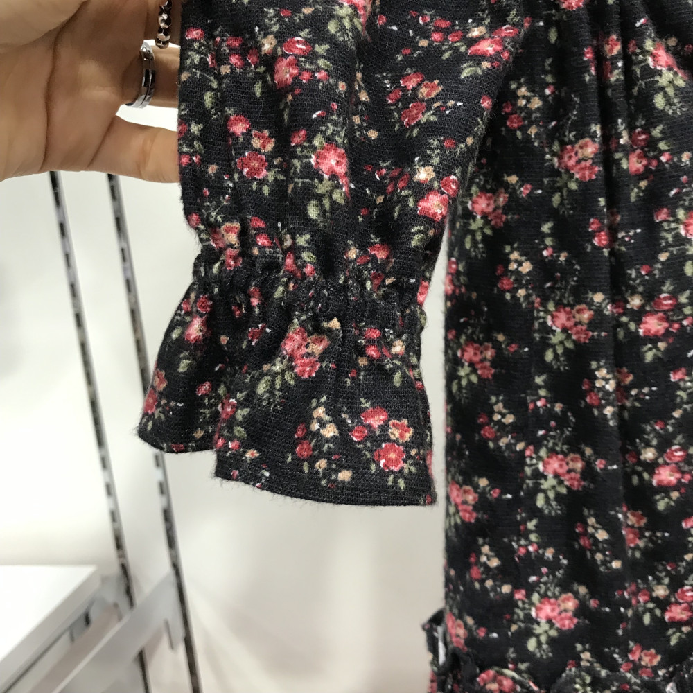 목 부분과 소매 부분에 프릴 포인트가 들어가 있는 잔꽃 패턴의 롱 원피스입니다.