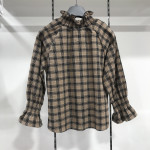 카라 부분과 소매 부분에 스모크 밴딩 디테일이 들어가있는 반넥 기모 체크 겨울 블라우스입니다.