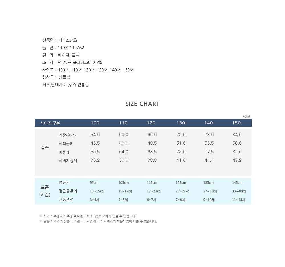 제니스팬츠 아동 따뜻한 기모팬츠 11972-110-262-be 요약정보 및 구매