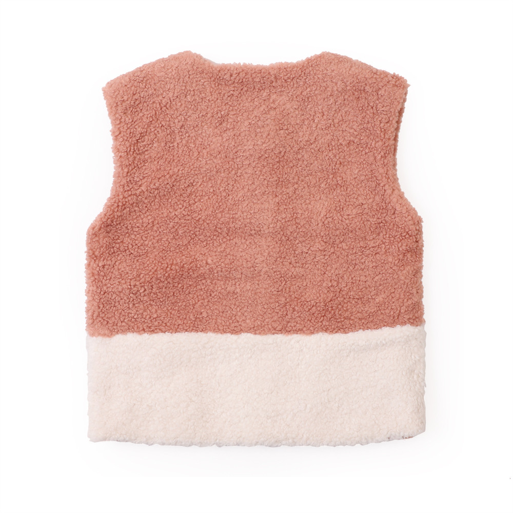 부드러운 양털로 가볍고 따뜻한 베스트입니다. 아이보리컬러와 카멜컬러 조합이 귀여운 베스트입니다