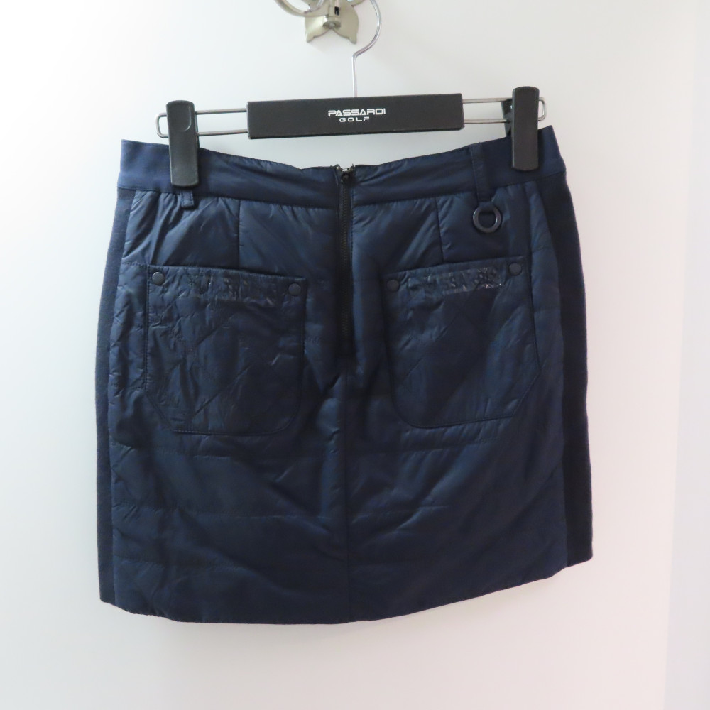 아웃 포켓 포인트 골프 패딩 스커트 네이비 컬러입니다.