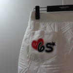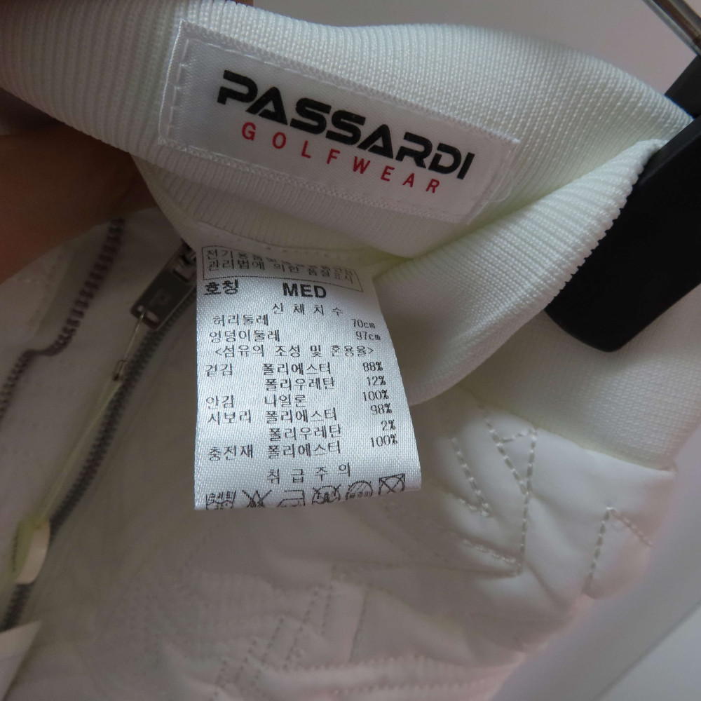 화이트 컬러의 패딩 누빔 골프 스커트 입니다.