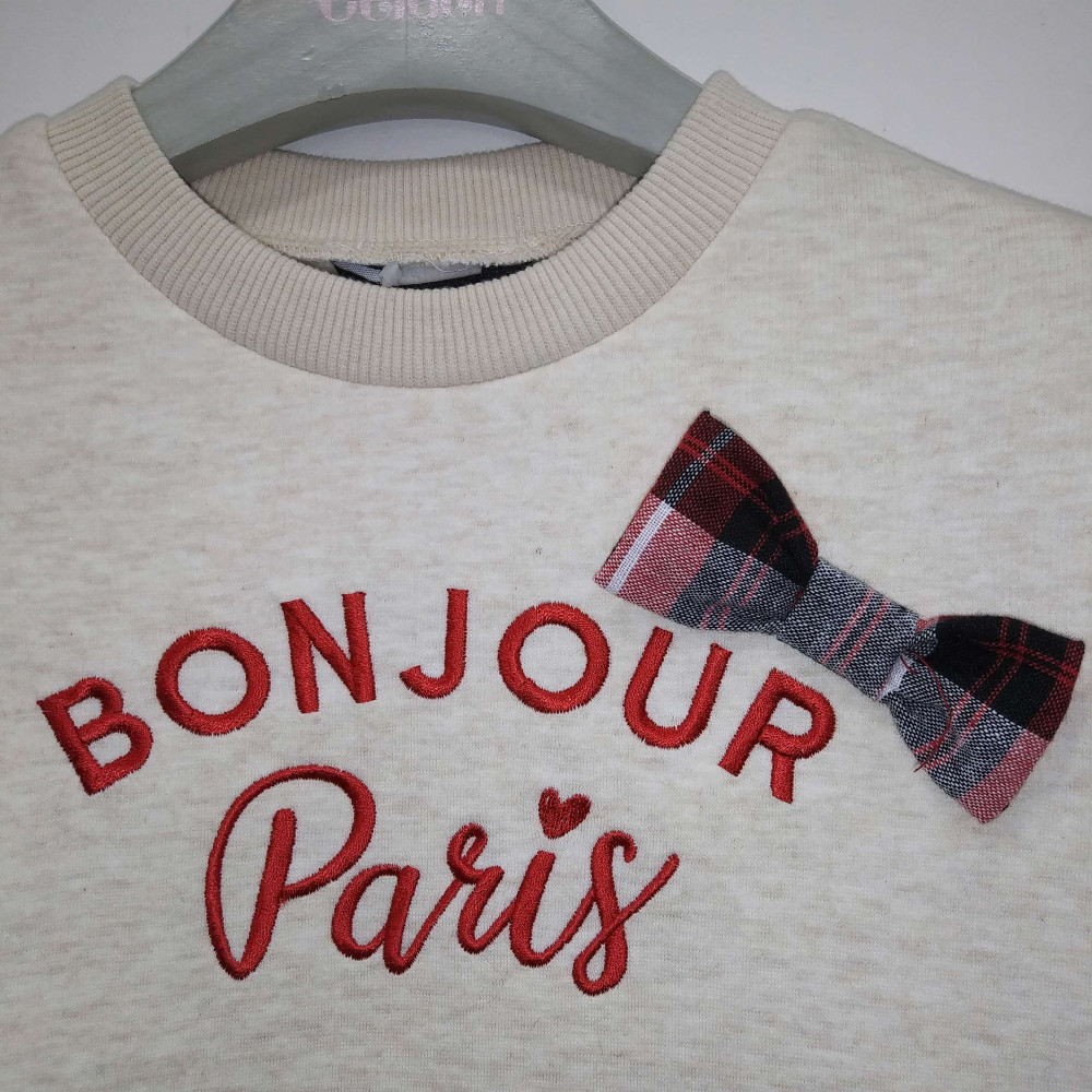 체크프릴 밑단과 리본이 돋보이는 맨투맨 티셔츠 밑단에 틔임을 줘서 라인이 예쁘고 편안한 핏